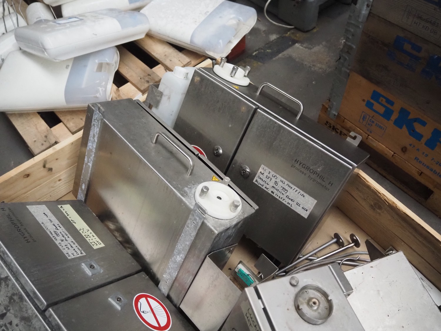 5 Ultrakust / Bartec hygrophil meters, dimensions: (5x) 400 mm x 200 mm x 300 mm, total dimensions: 1200 mm x 800 mm x 500 mm.