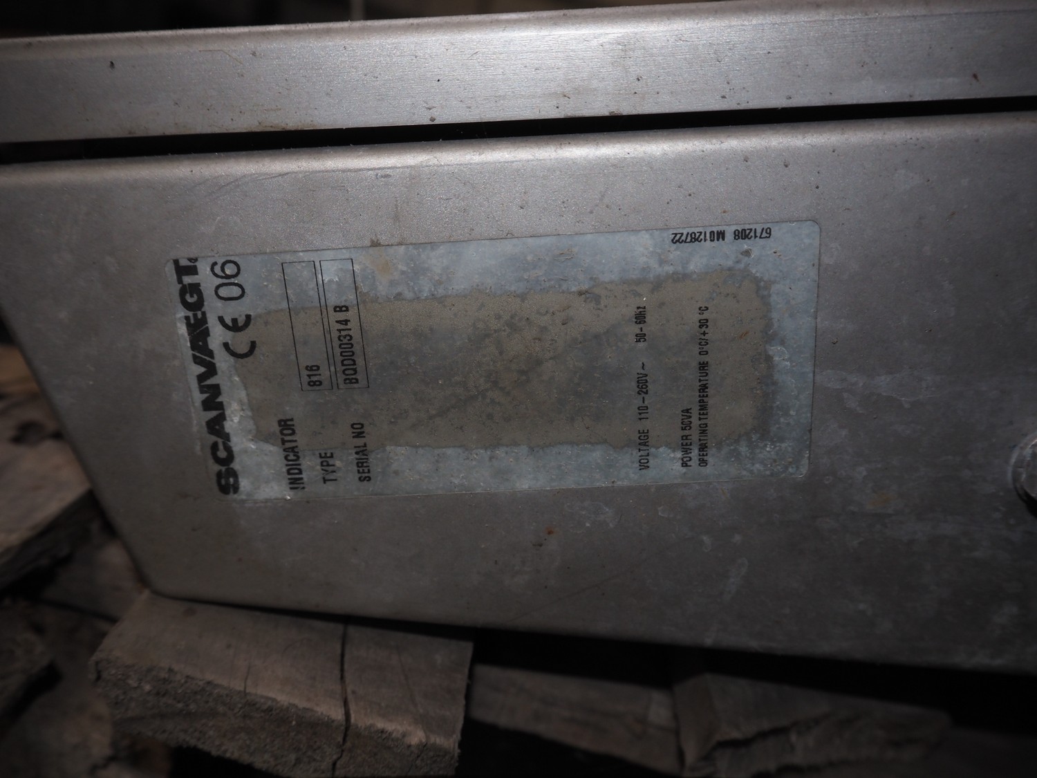 Scanvaegt indicator for weighing scale, type: 816, serial number: BQD00314 B, 110-260 V, 50-60 Hz, dimensions: 600 mm x 460 mm x 200 mm.