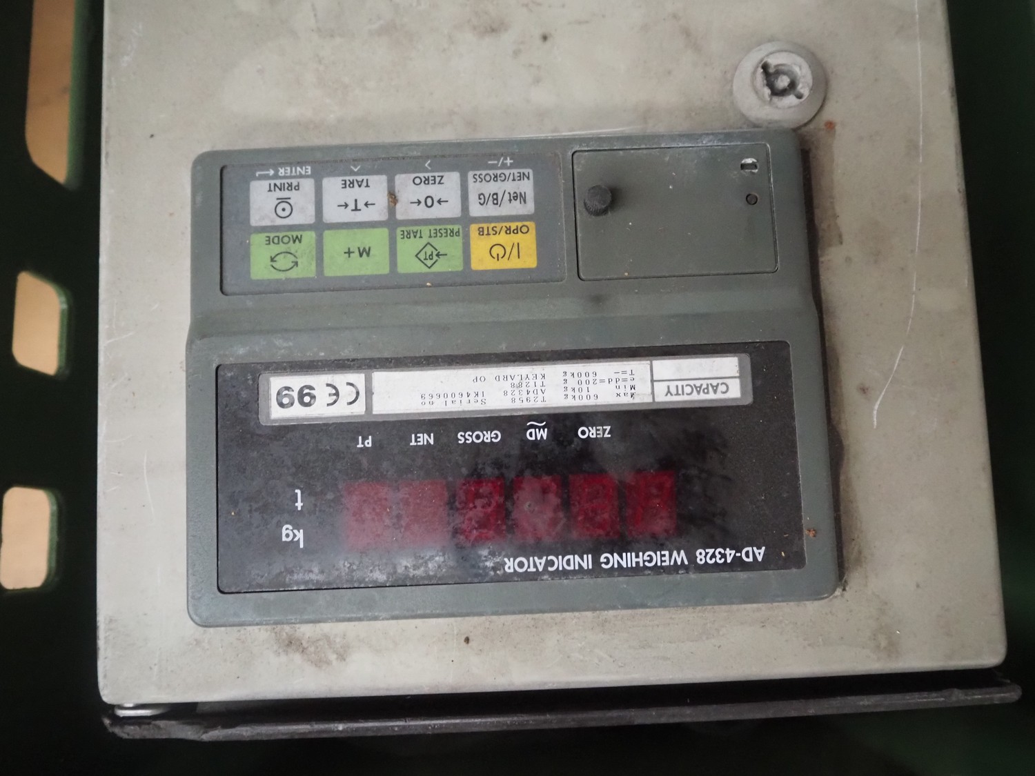 A&D; Weighing indicator for weighing scale, type: AD-4328, year of construction: 1999, minimum: 10 Kg, maximum: 600 Kg, dimensions: 600 mm x 400 mm x 200 mm.