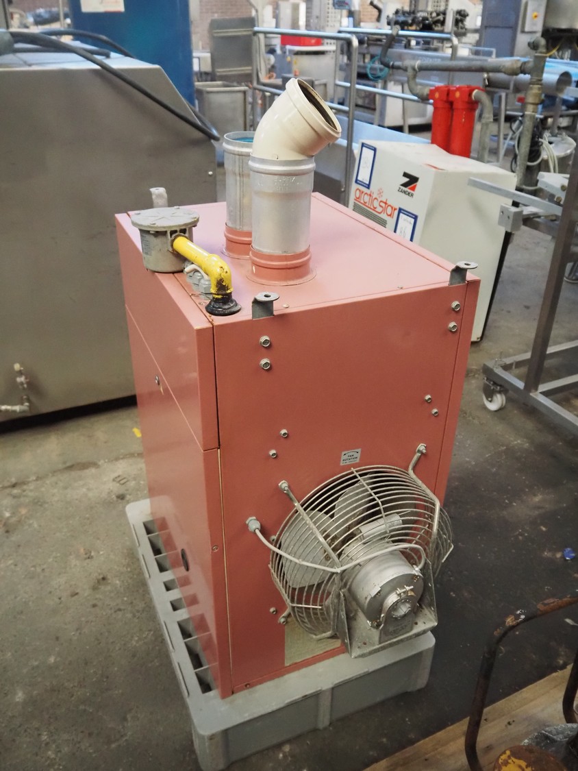 Reznor Europe N.V. gas heated air heater, type: EURO-T 20255, serial number: 981100063, dimensions: 520 mm x 900 mm x 1100 mm.