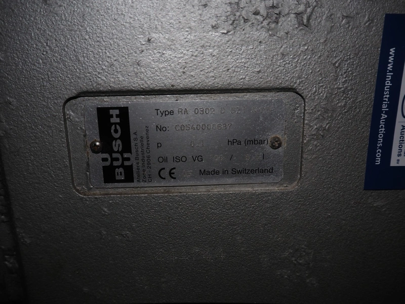 Busch vacuum pump on steel frame, type: RA 0302 D 5ZI, number: C0540000637, year of construction: 2005 capacity: 300 m³ per hour, dimensions: 1150 mm x 750 mm x 1150 mm.