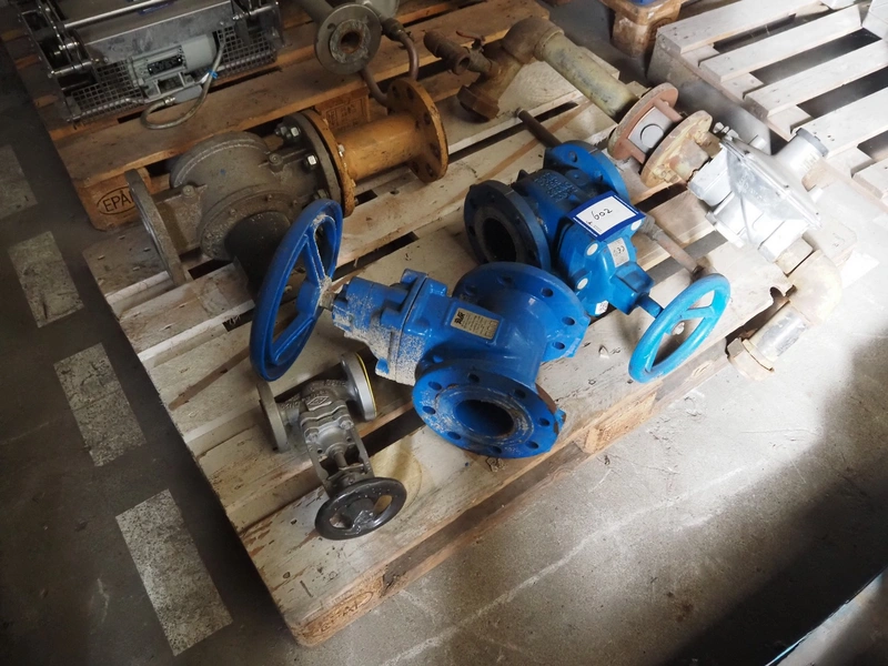 Pallet with various valves, dimensions pallet: 1200 mm x 800 mm x 500 mm.