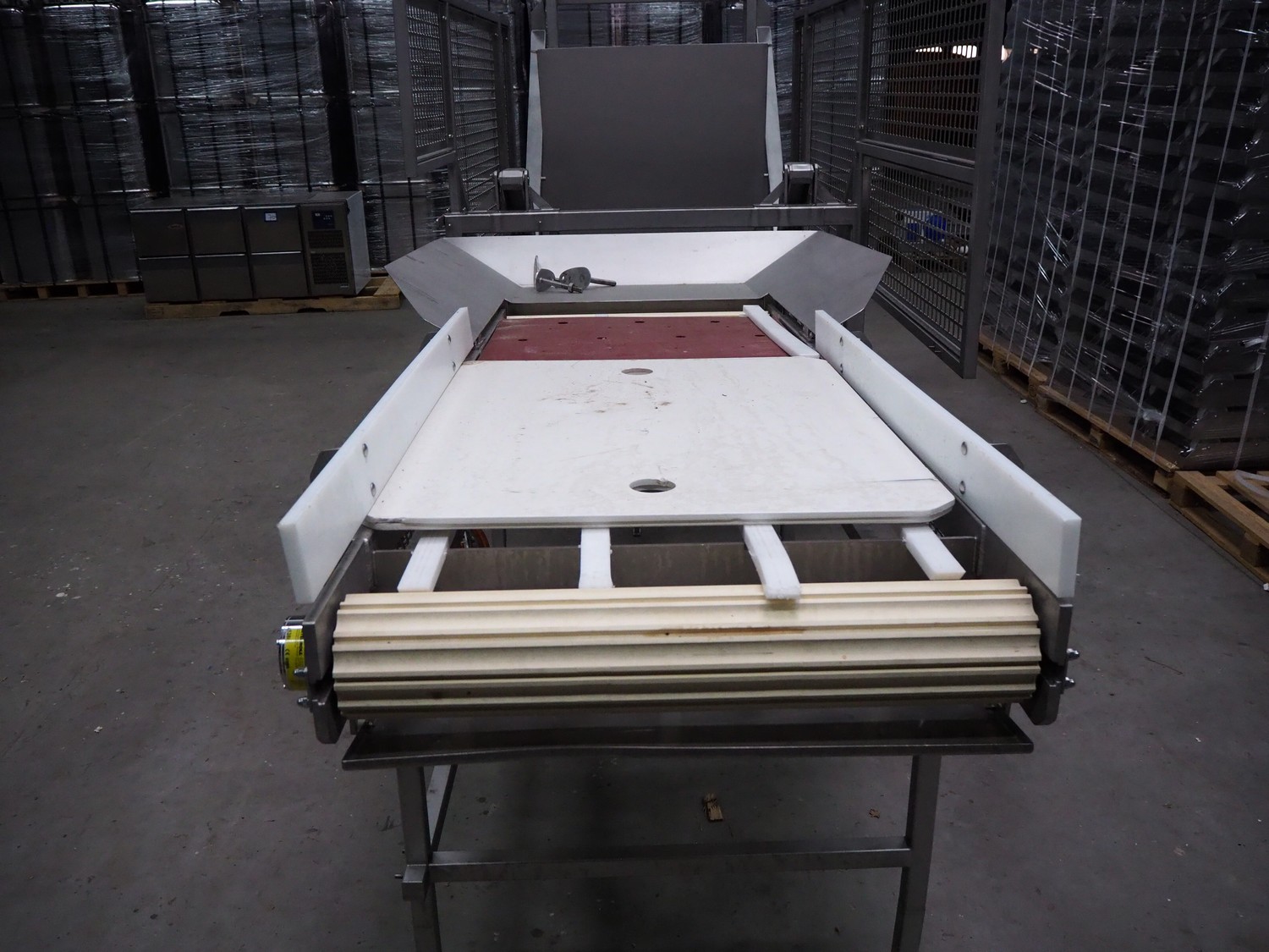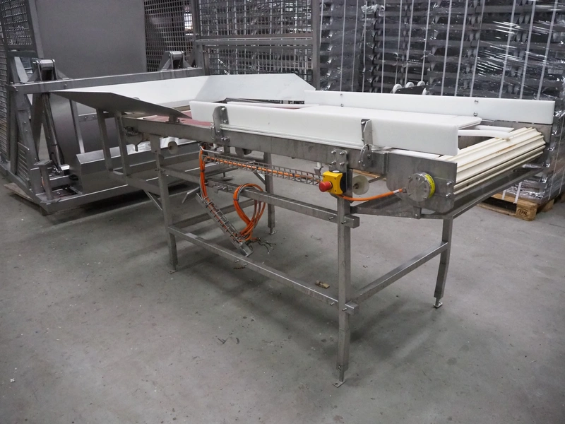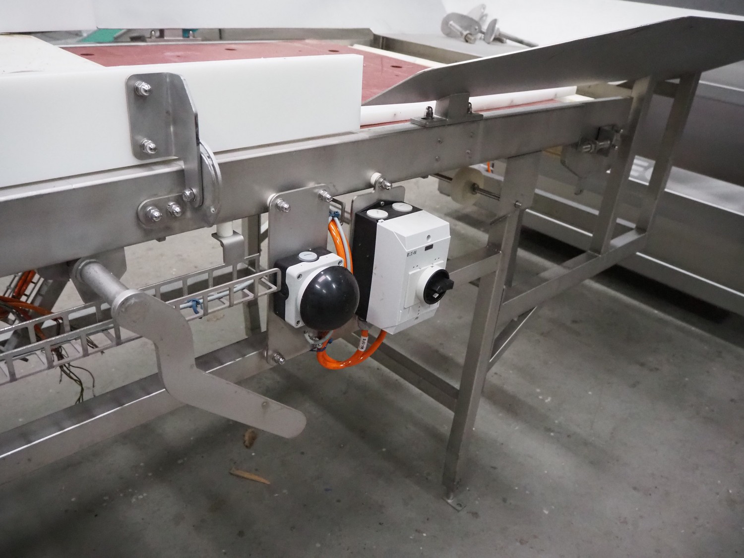 Itec Food Technology outfeed transport conveyor, dimensions: 3000 mm x 1430 mm x 1250 mm. Belt is missing.