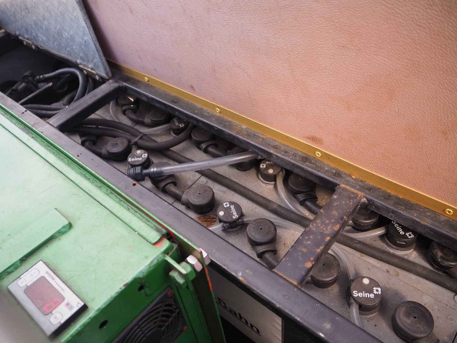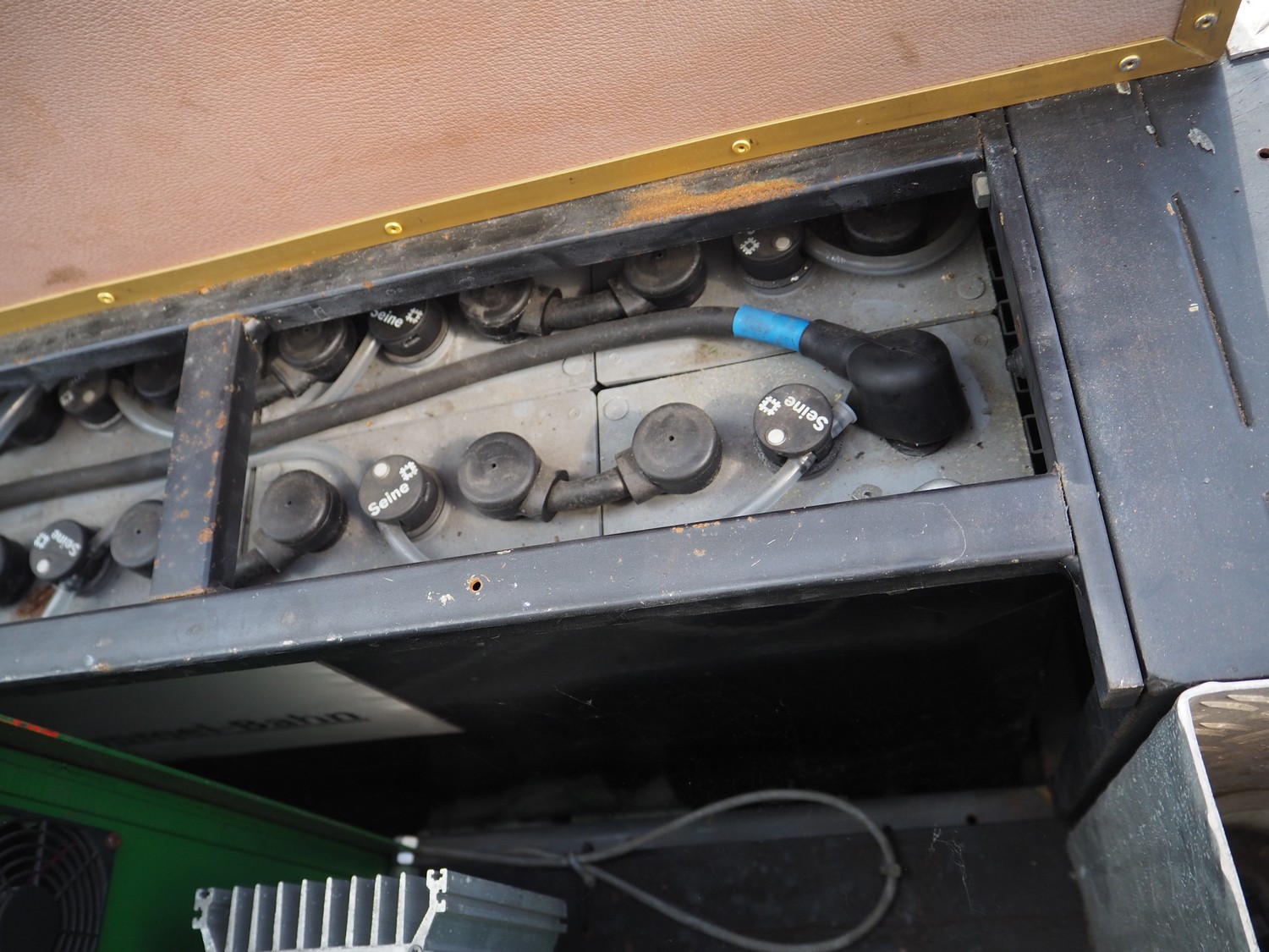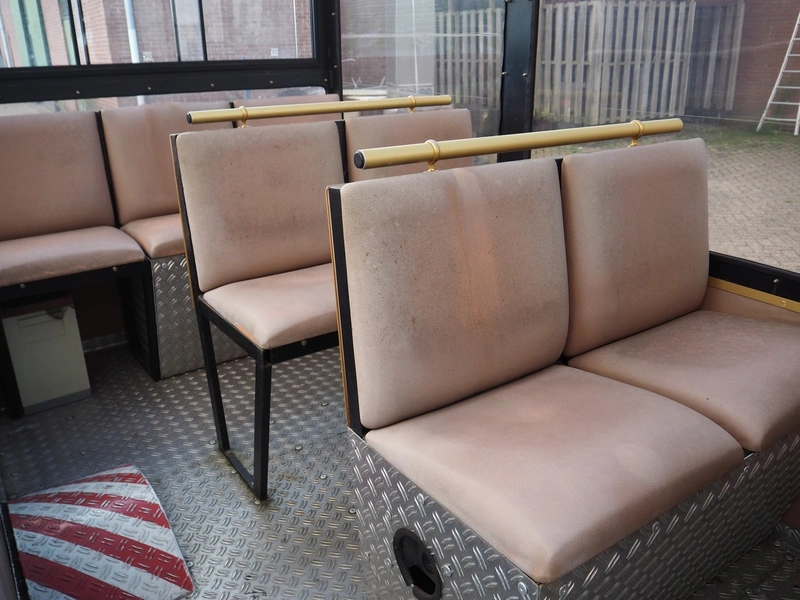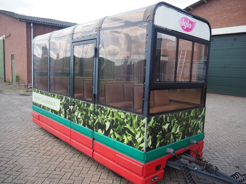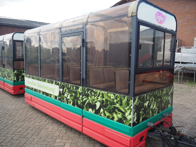 Tschu-Tschu-Bahnen electric train, type: EH, number: W09HEF23260T08001, year of construction: 2003, 48 V, weight: 4000 kg, 3 cabins, 29 passenger seats, dimensions each cabin: (1x) 3800 mm x 2550 mm x 1600 mm, (1x) 4200 mm x 2550 mm x 1600 mm, (1x) 4200 mm x 2550 mm x 1600 mm, total dimensions: 14100 mm x 2550 mm x 1600 mm. Without battery charger.