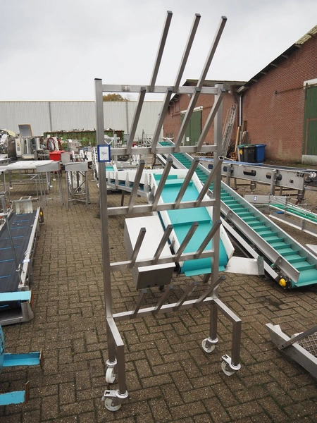 S/s mobile boot rack, 10 pairs, dimensions: 800 mm x 370 mm x 2200 mm. 1 peg is missing.