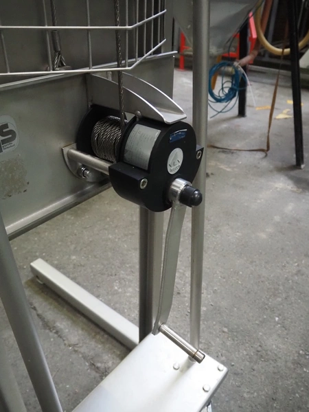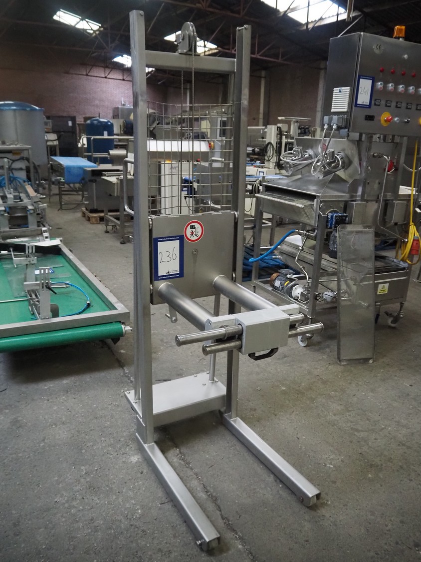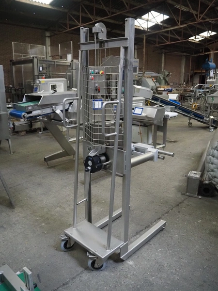 Haacon mobile lifter, platform dimensions: 600 mm x 550 mm, lifting height: 1600 mm, total dimensions: 970 mm x 600 mm x 2000 mm.