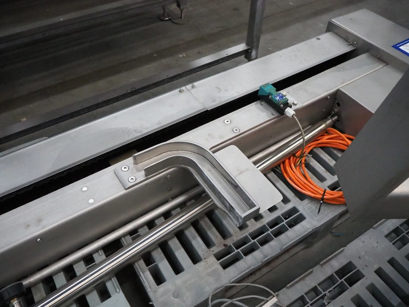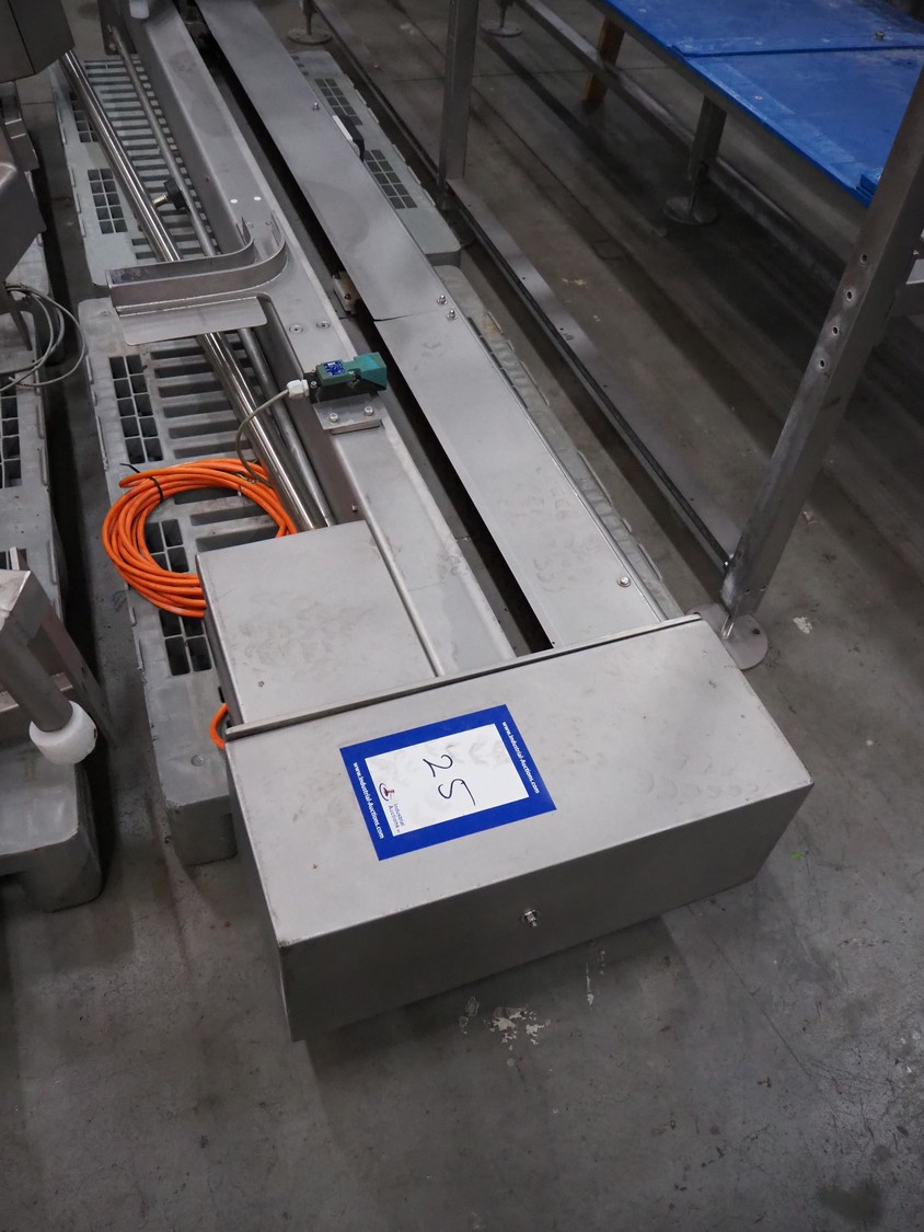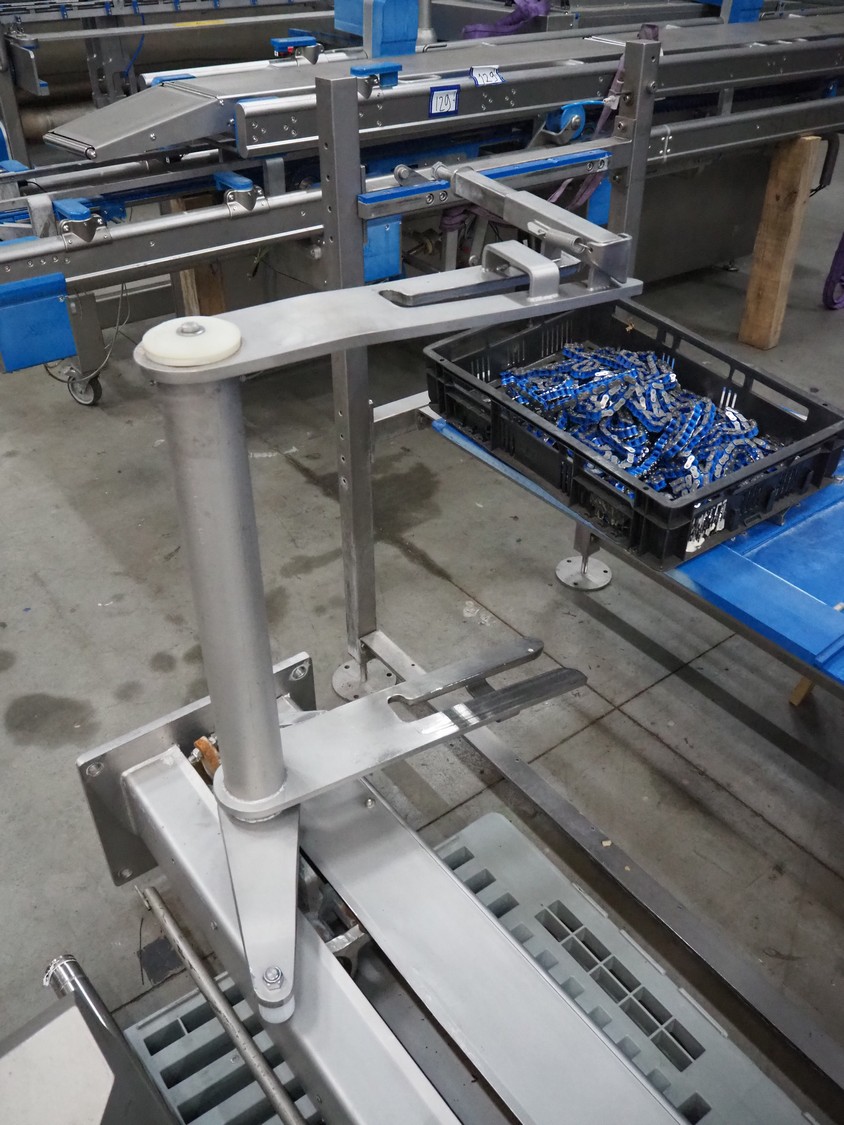 S/s lifter for meat bins, lifting height: 1850 mm, total dimensions: 1200 mm x 900 mm x 3070 mm.