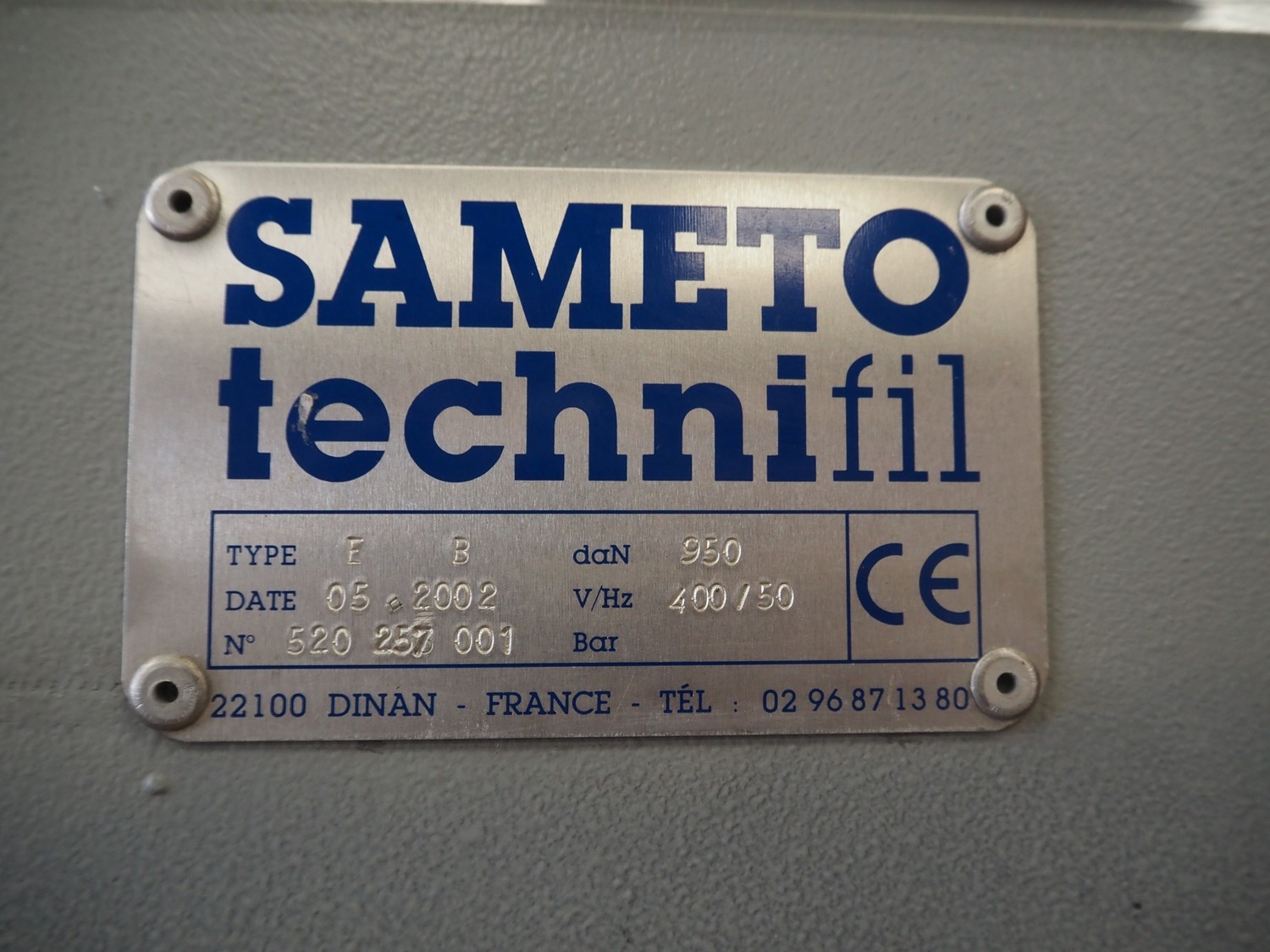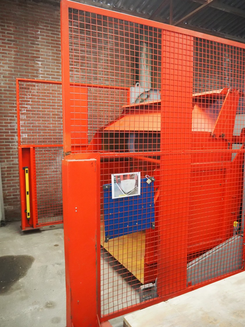 Sameto Technifil lifter for pallet boxes, type: E B, number: 520 257 001, year of construction: 05 - 2002,400 V, 50 Hz, elevating height: 2200 mm, total dimensions: 3500 mm x 3200 mm x 2750 mm.