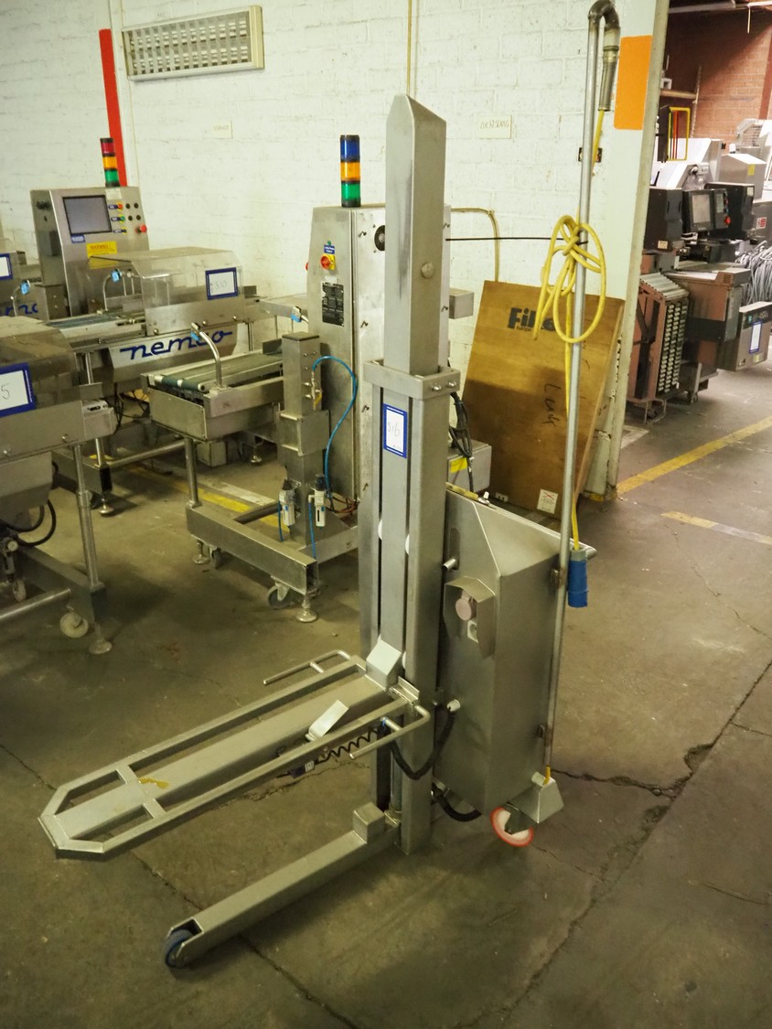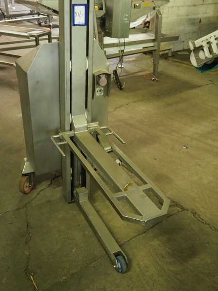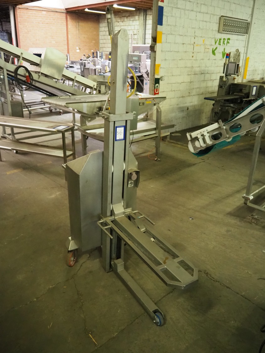 Selo mobile ergolift, fork length: 800 mm x 350 mm, lifting height: 1000 mm, total dimensions: 1250 mm x 600 mm x 1950 mm. Missing cover.