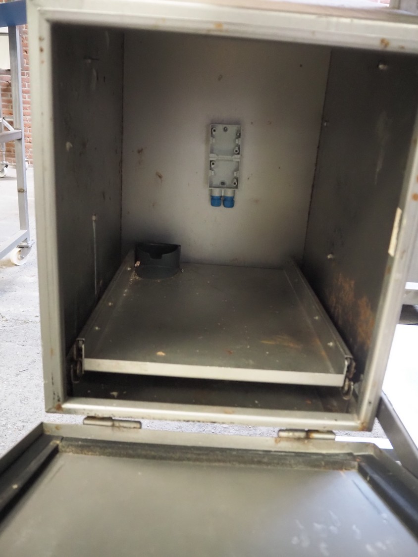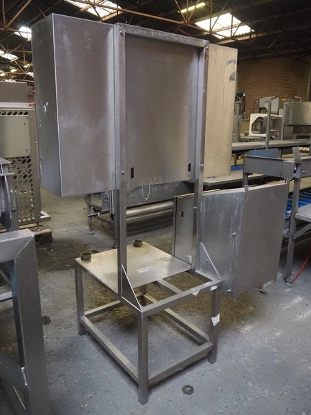S/s cabinet on frame, dimensions cabinet: 1200 mm x 300 mm x 800 mm and 450 mm x 560 mm x 670 mm, total dimensions: 1350 mm x 950 mm x 2000 mm.