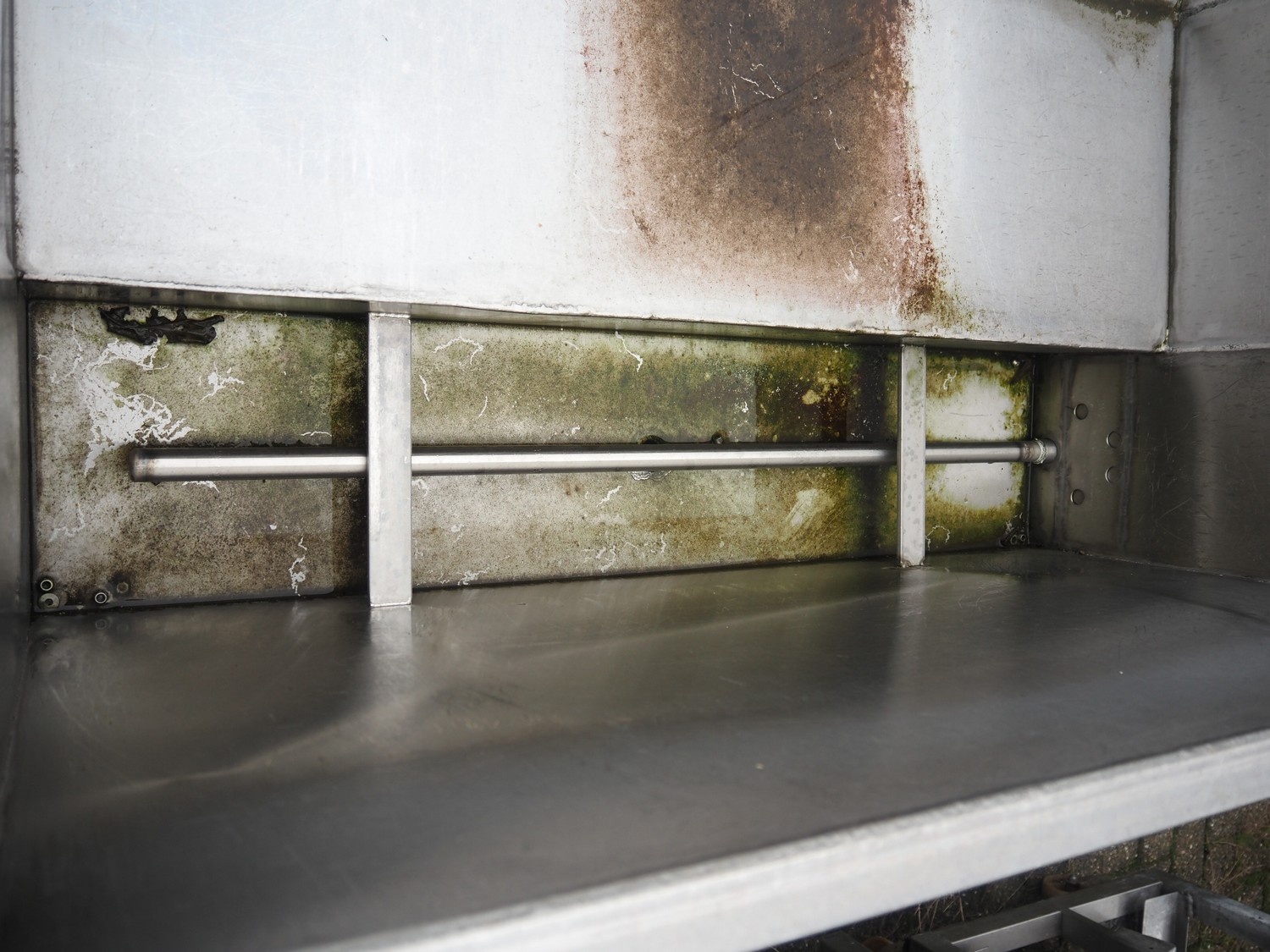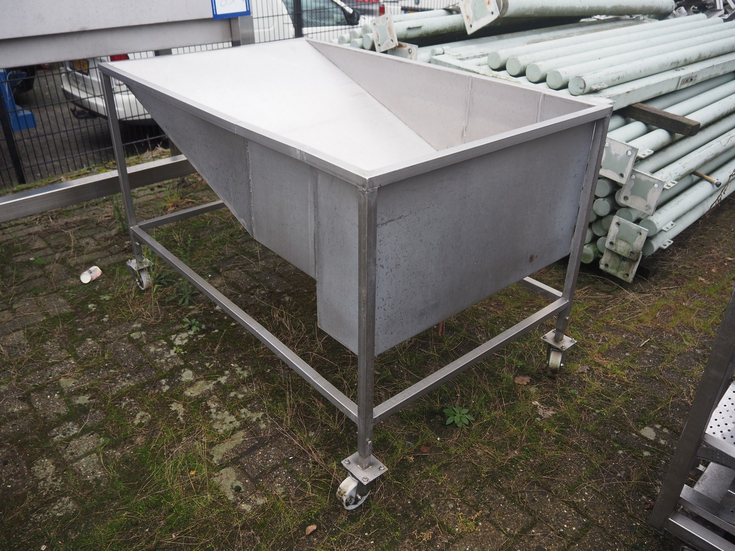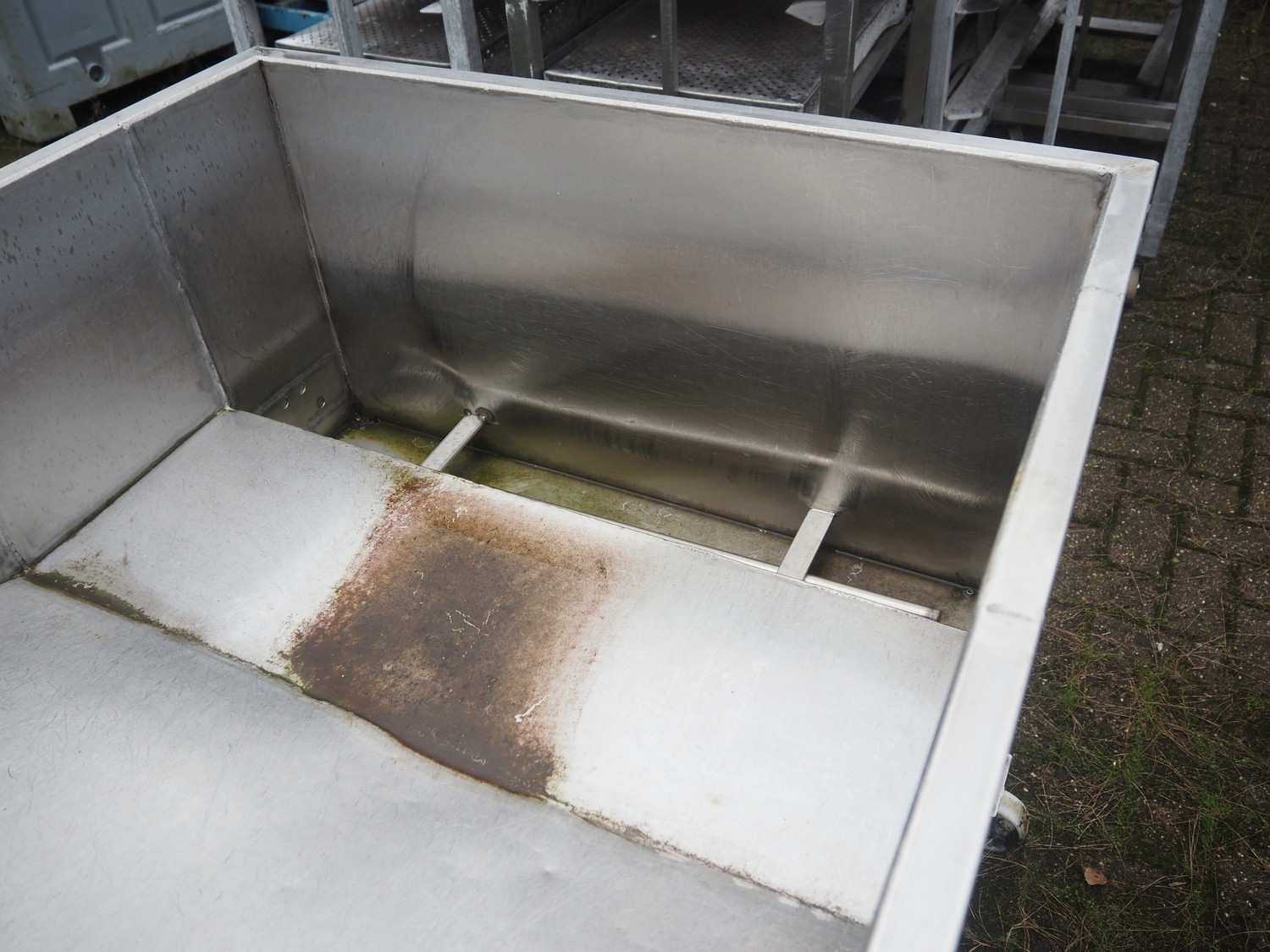 S/s mobile tub, dimensions: 965 mm x 1550 mm x 985 mm.