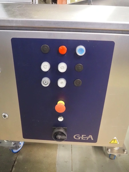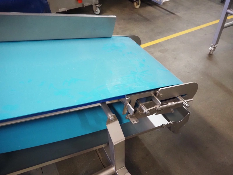 GEA/Hellings Machinebouw B.V. mobile elevating belt, s/s frame, plastic belt, year of construction: 2018, belt width: 600 mm, elevating height: from 600 mm till 1050 mm, total dimensions: 1800 mm x 1100 mm x 1100 mm.