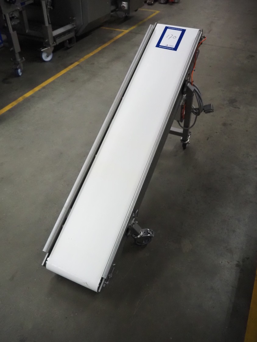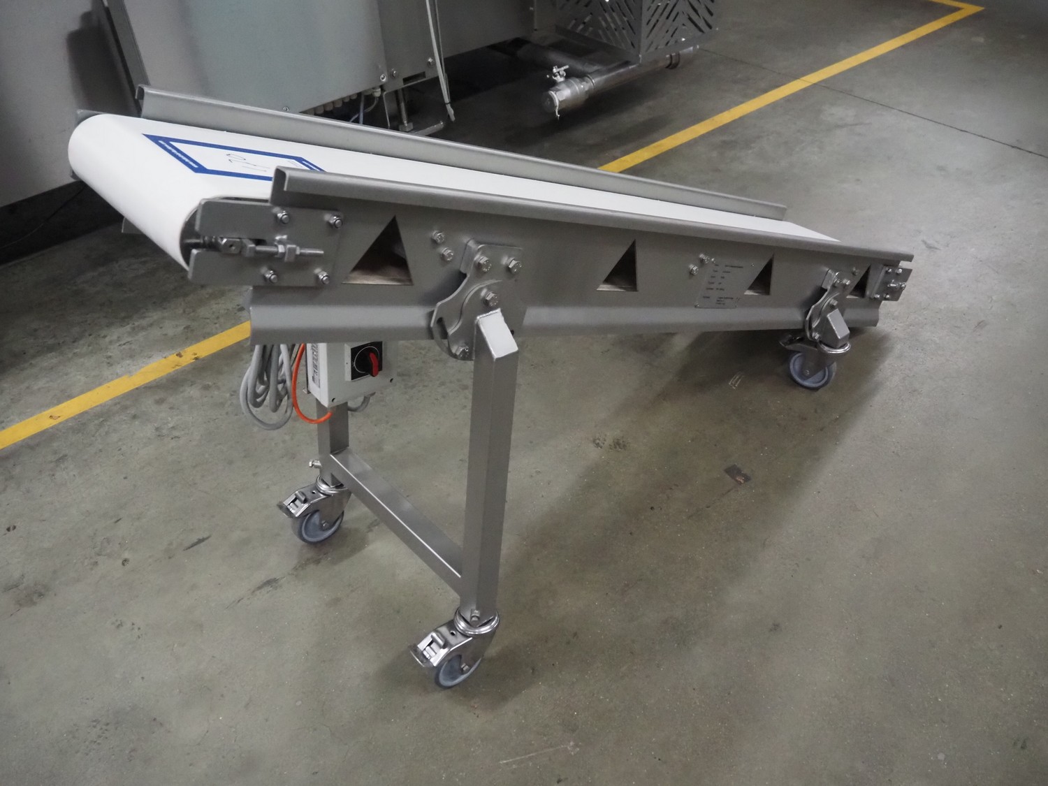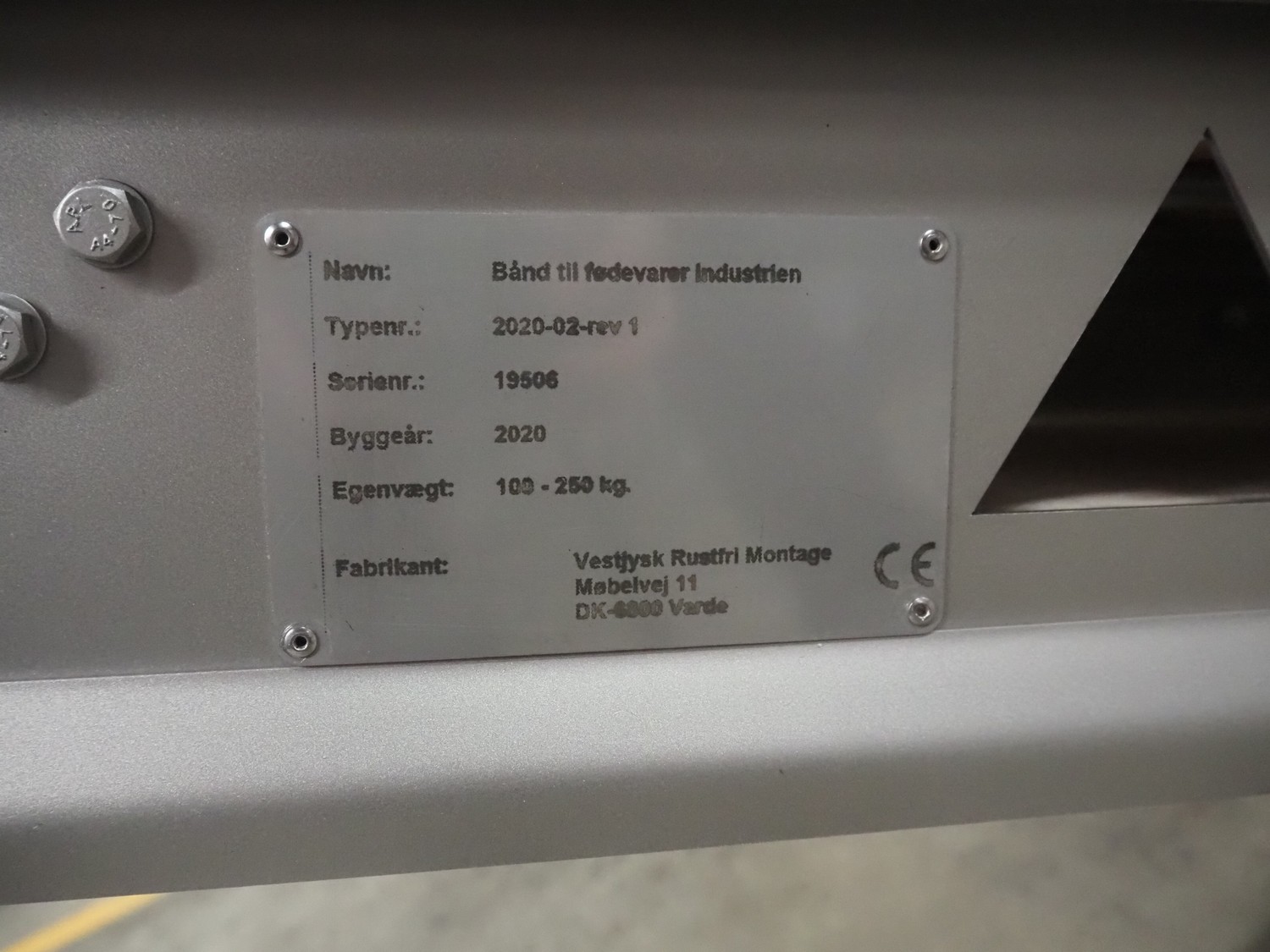 Vestjysk Rustfri Montage mobile elevating belt, s/s frame, plastic belt, type number: 2020-02-rev 1, serial number: 19506, year of construction: 2020, belt width: 290 mm, elevating belt: 850 mm, total dimensions: 1500 mm x 400 mm x 800 mmm.