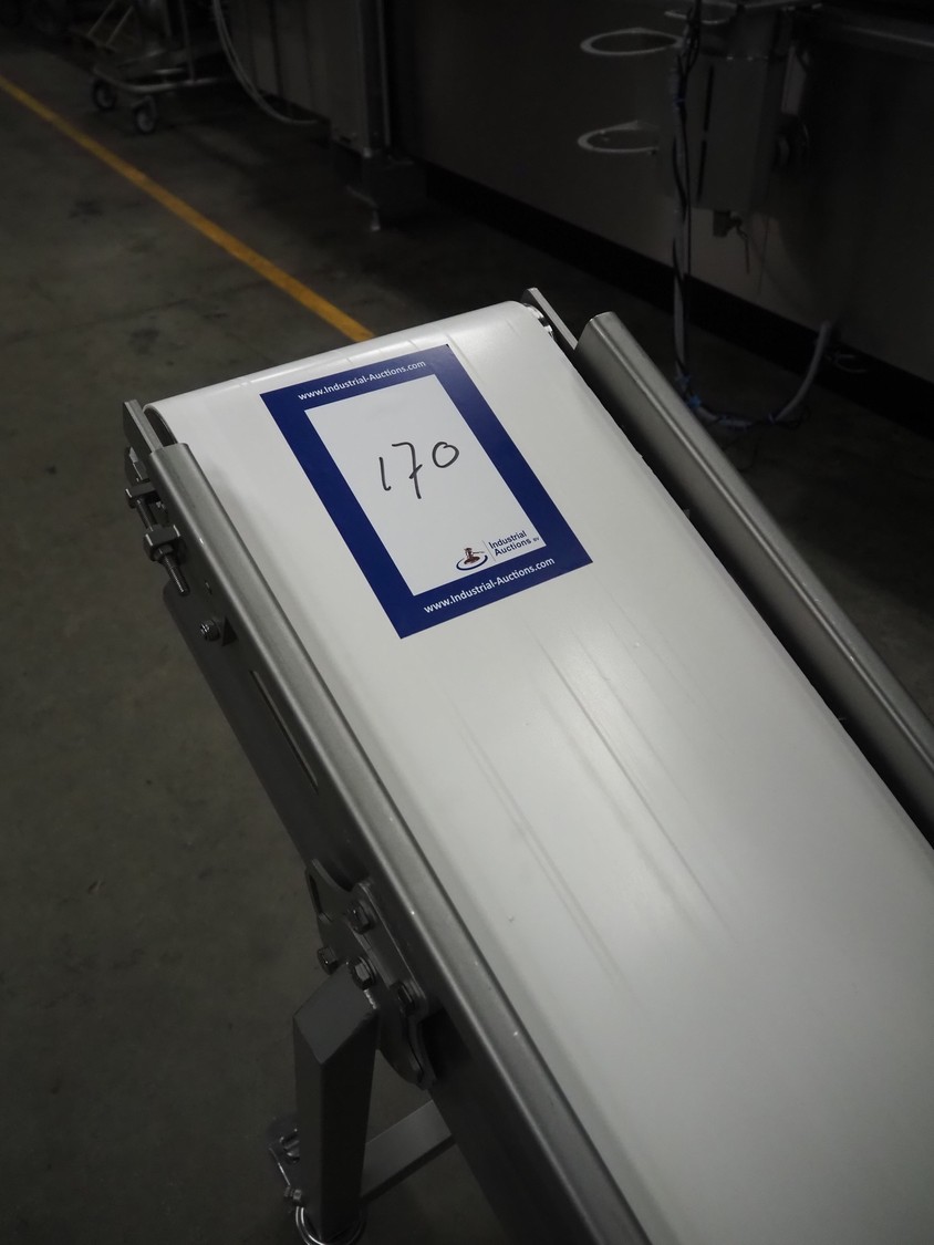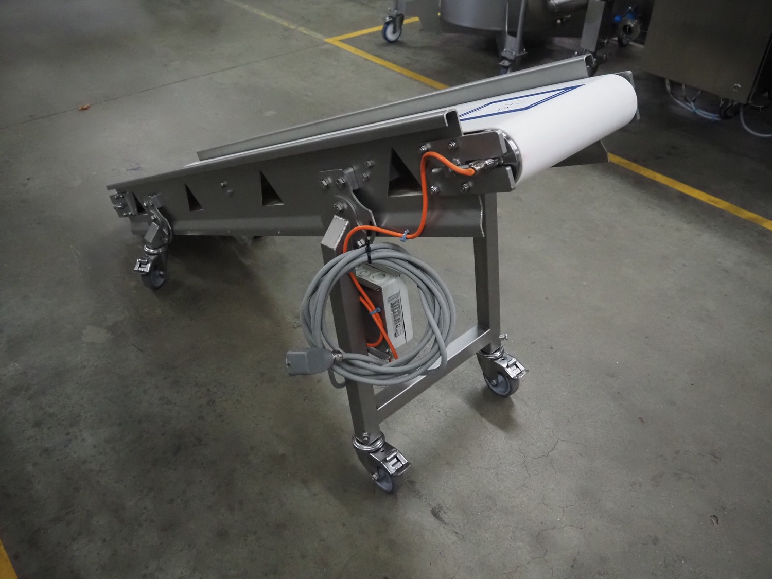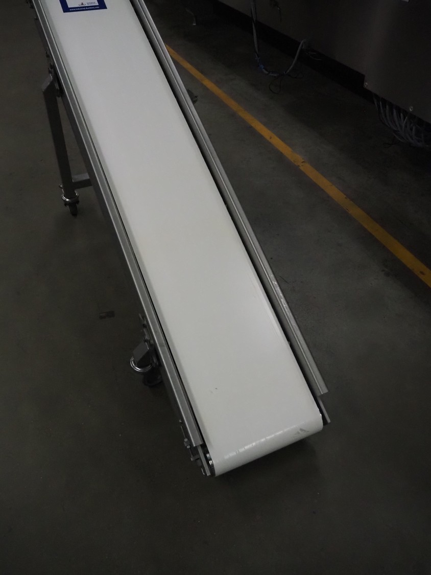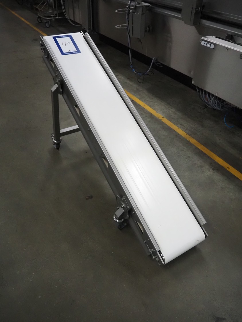 Vestjysk Rustfri Montage mobile elevating belt, s/s frame, plastic belt, type number: 2020-02-rev 1, serial number: 19506, year of construction: 2020, belt width: 290 mm, elevating belt: 850 mm, total dimensions: 1500 mm x 400 mm x 800 mmm.