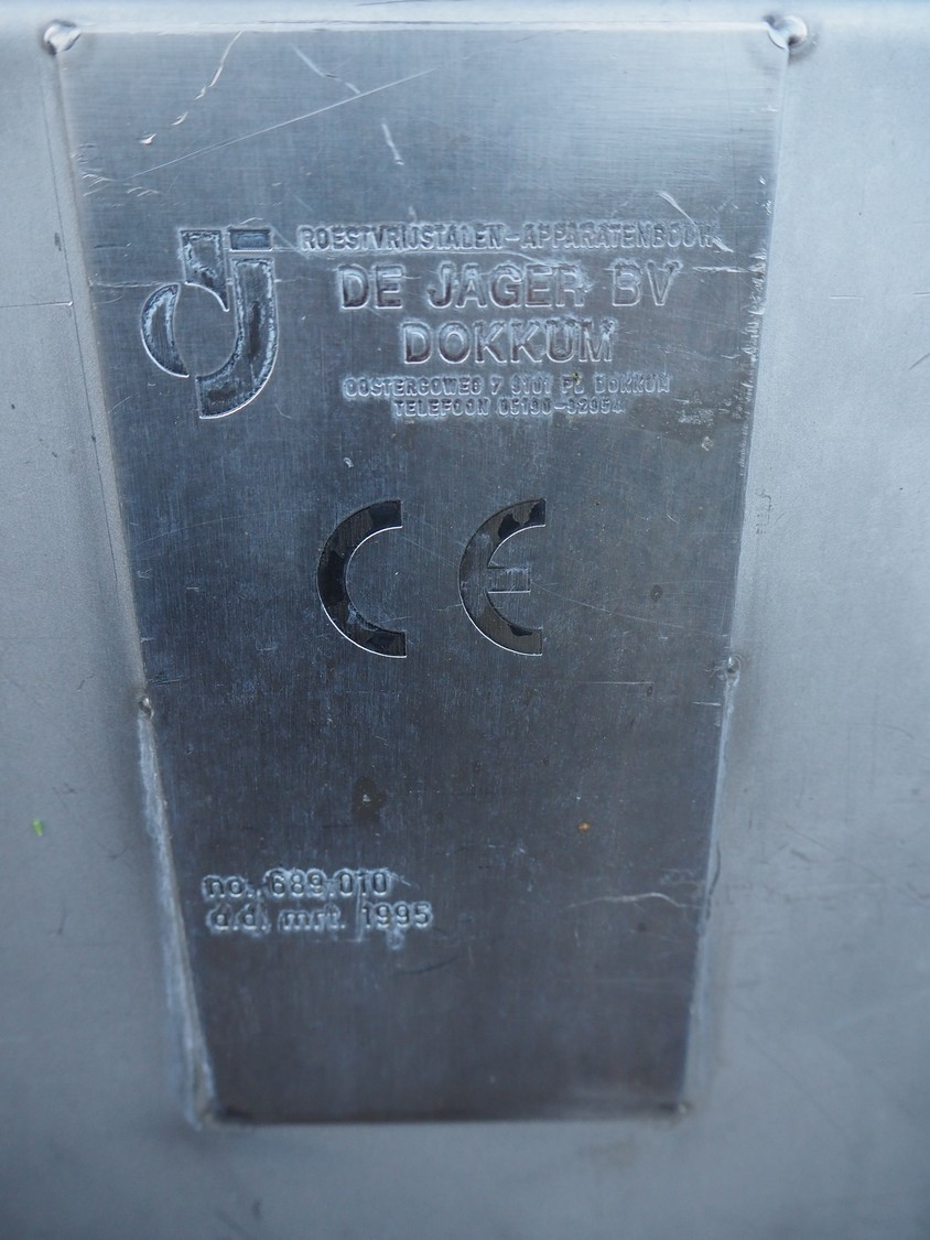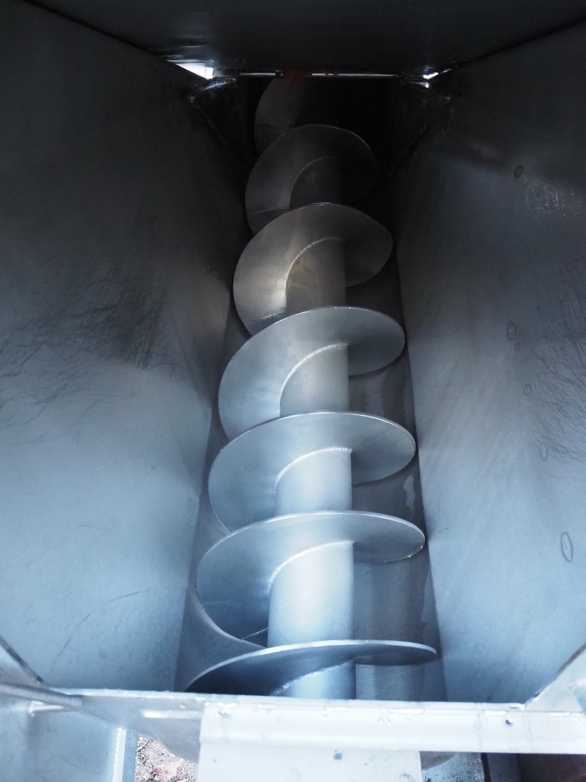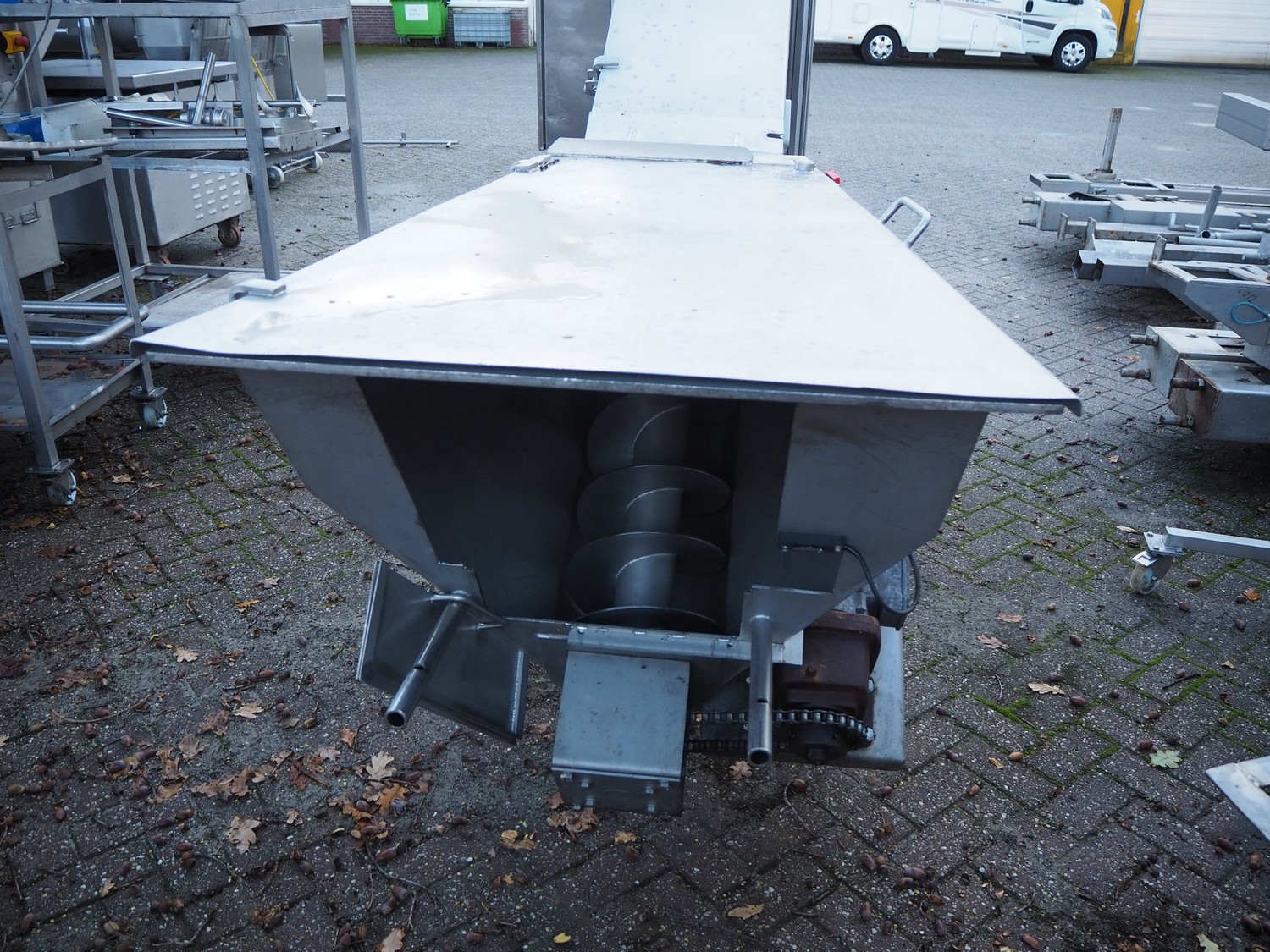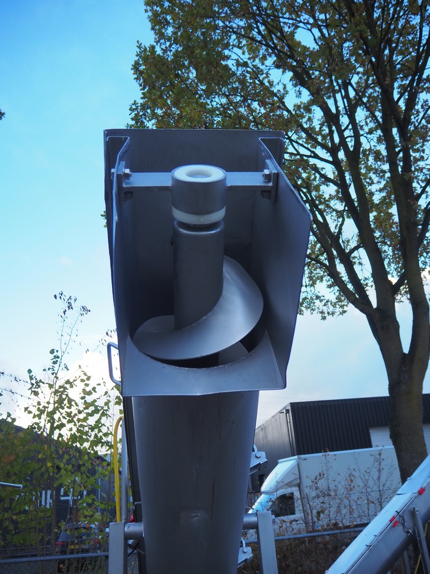 Roestvrijstalen-Apparatenbouw De Jager BV mobile elevating screw, number: 689.010, year of construction: March 1995, s/s screw, diameter screw: 250 mm, tier: 140 mm, elevating height: 2100 mm, total dimensions: 3800 mm x 1100 mm x 2600 mm.