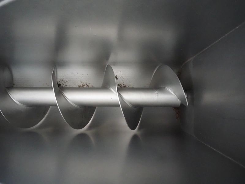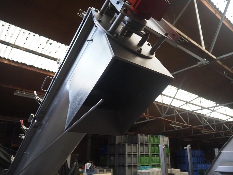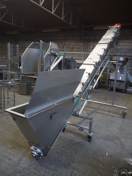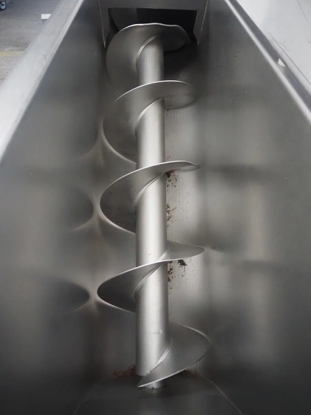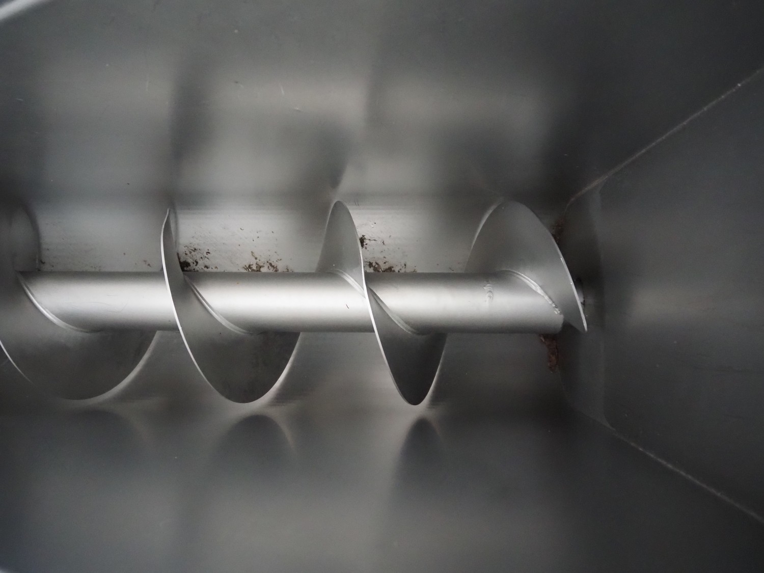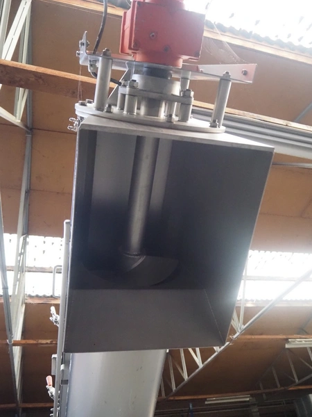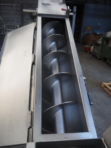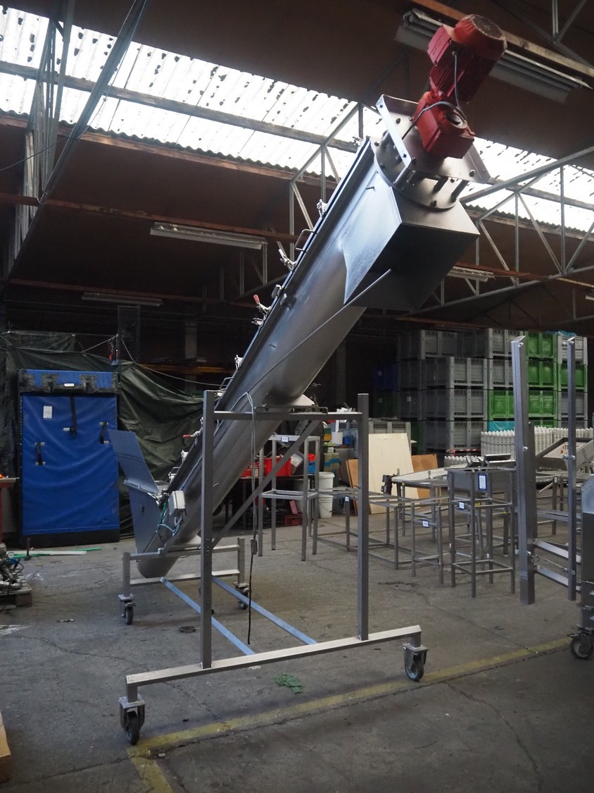 De Jager RVS mobile elevating screw, year of construction: 2012, s/s screw, diameter: 300 mm, tier: 250 mm, elevating height: 2650 mm, total dimensions: 5300 mm x 200 mm x 3100 mm.