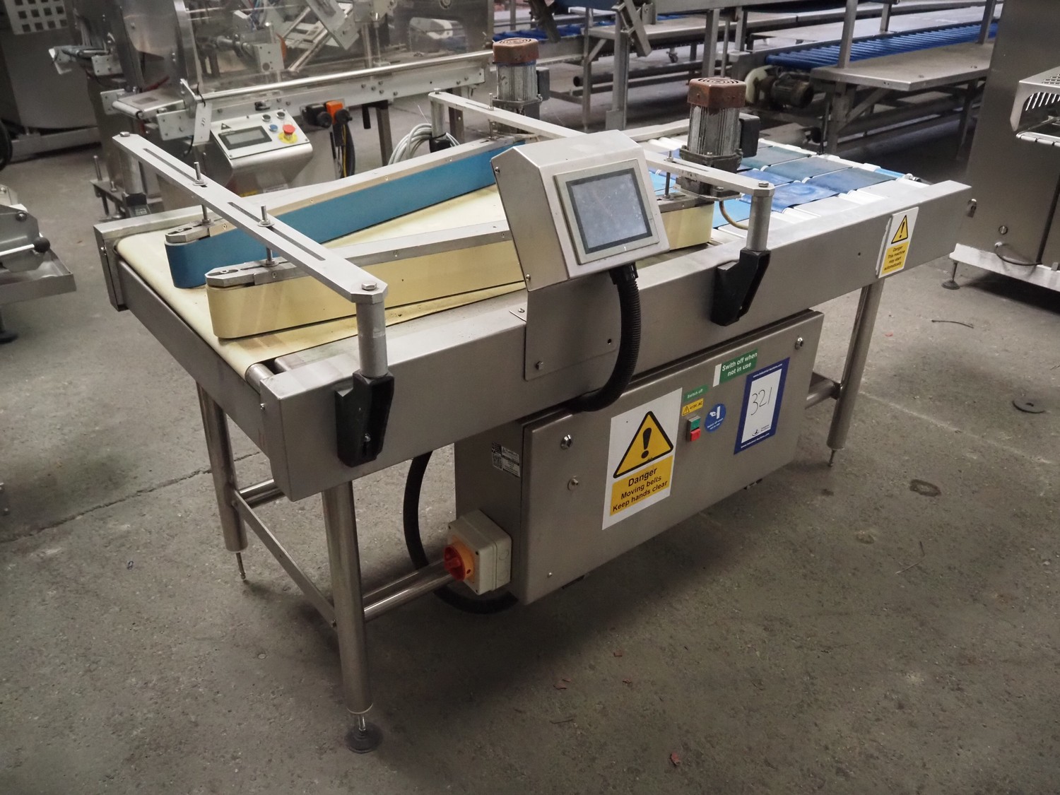 4 to 1 inliner, plastic belts, belt width: (4x) 80 mm, (12x) 120 mm, (2x) 75 mm, (1x) 660 mm, total dimensions: 2300 mm x 1100 mm x 1150 mm.
