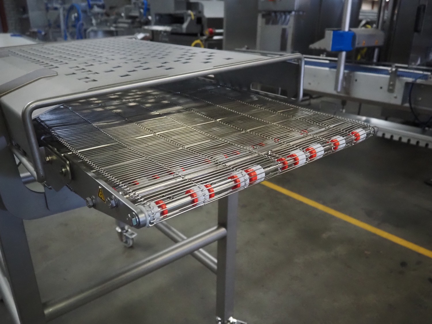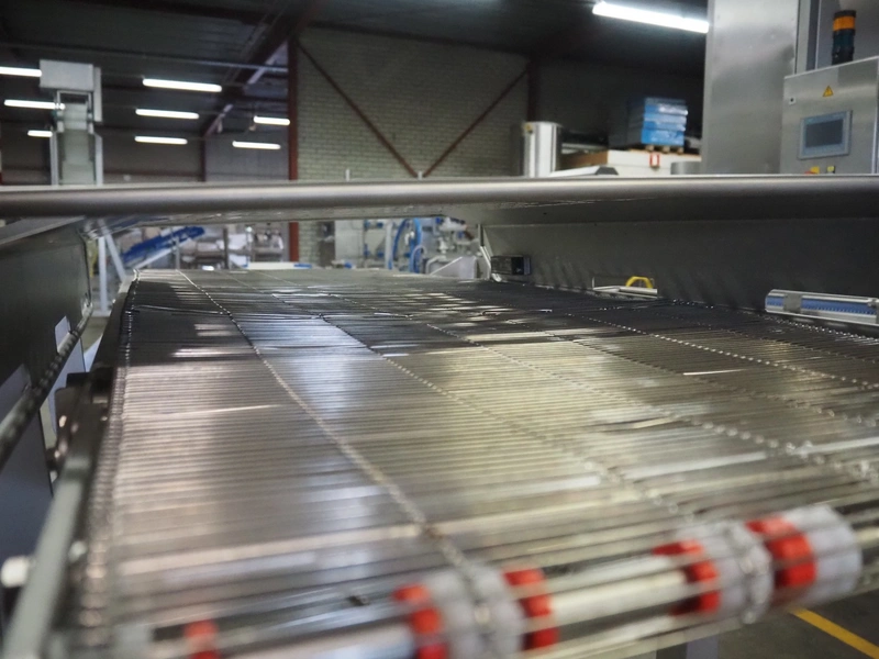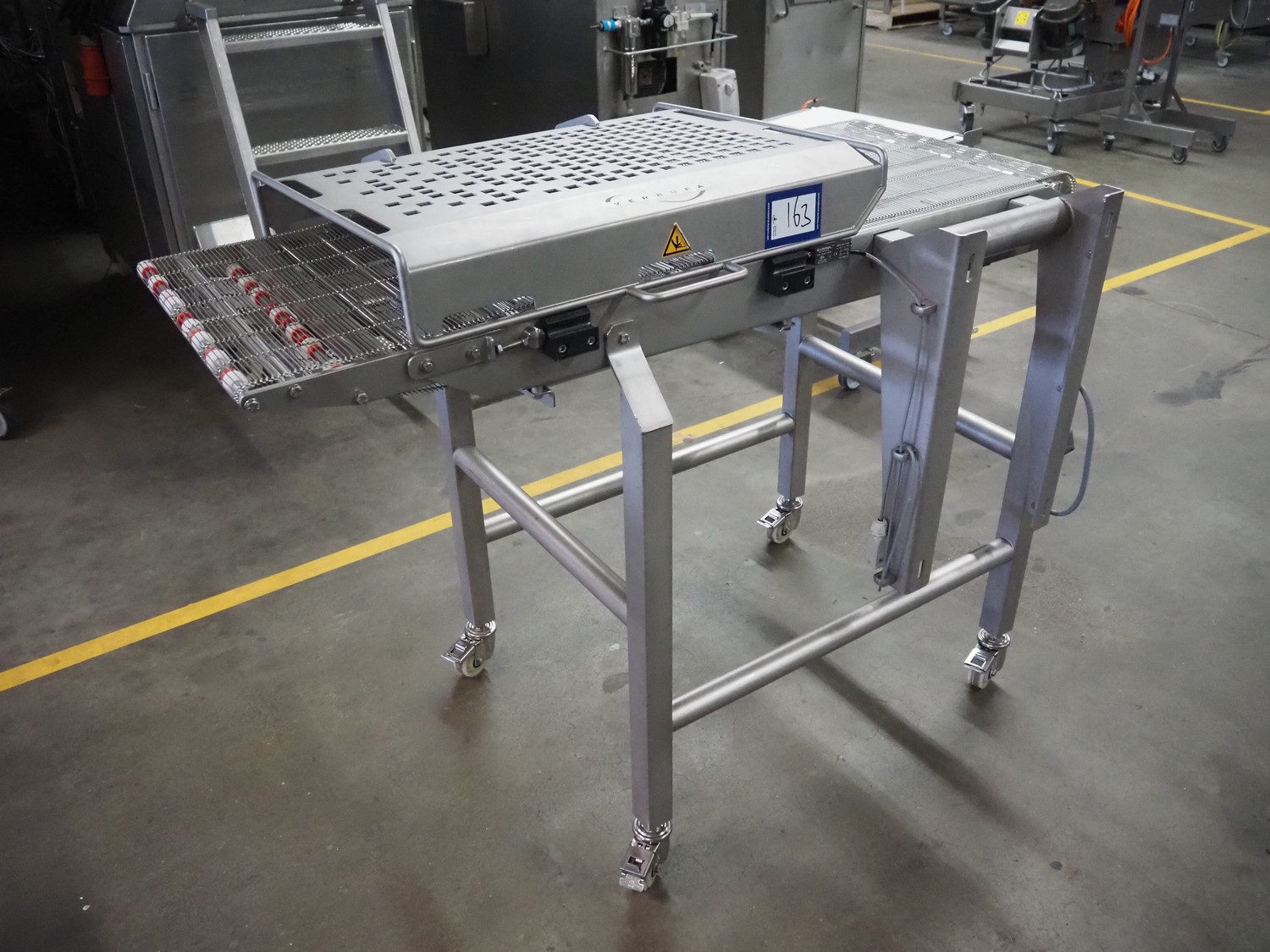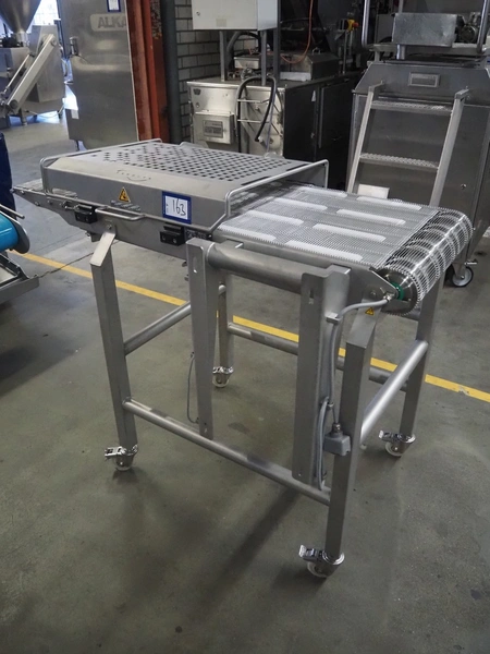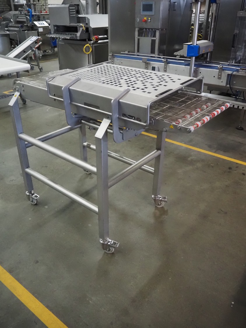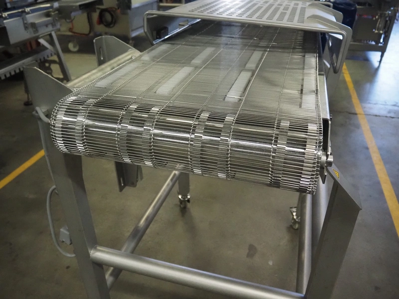 Verbufa mobile mesh belt, s/s frame, s/s mesh belt, belt width: 500 mm, total dimensions: 1400 mm x 800 mm x 1150 mm.