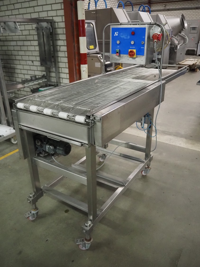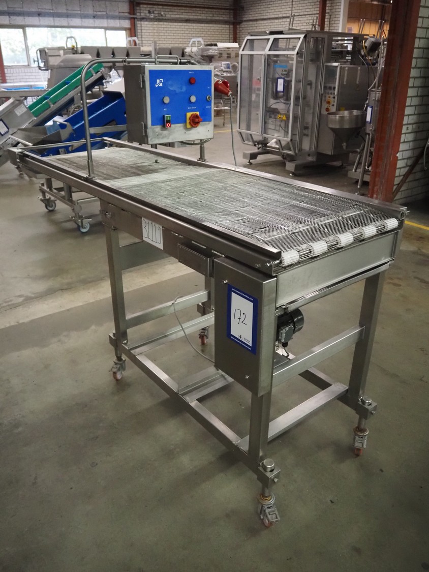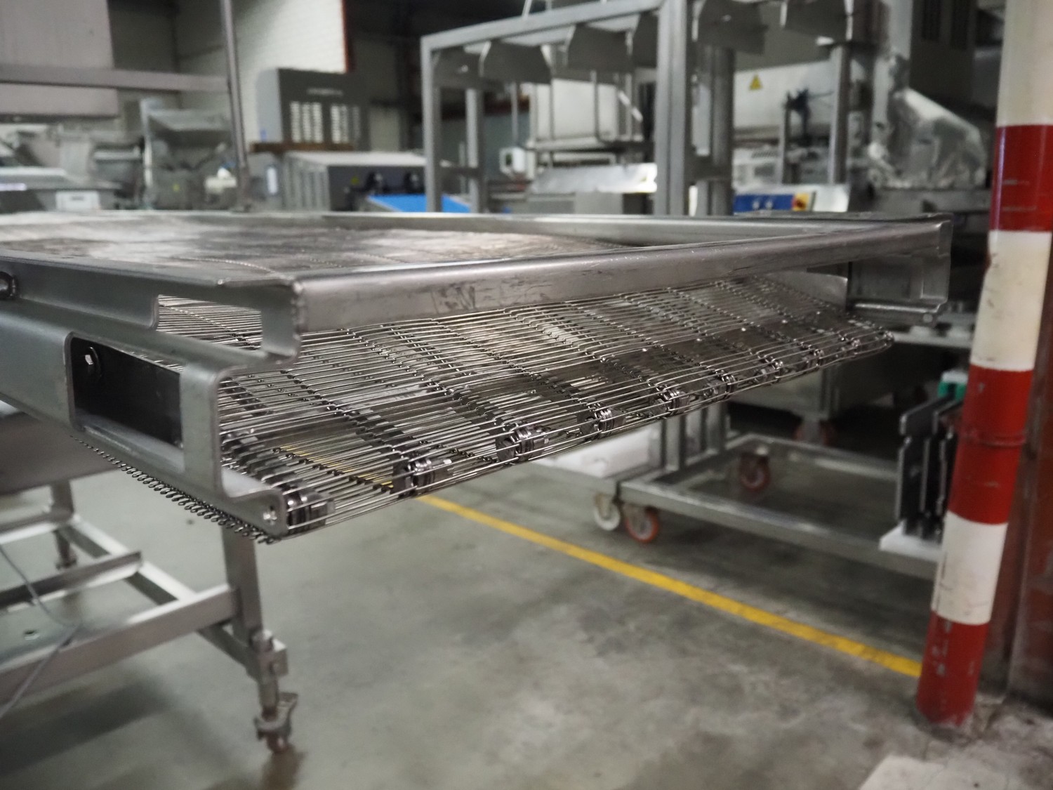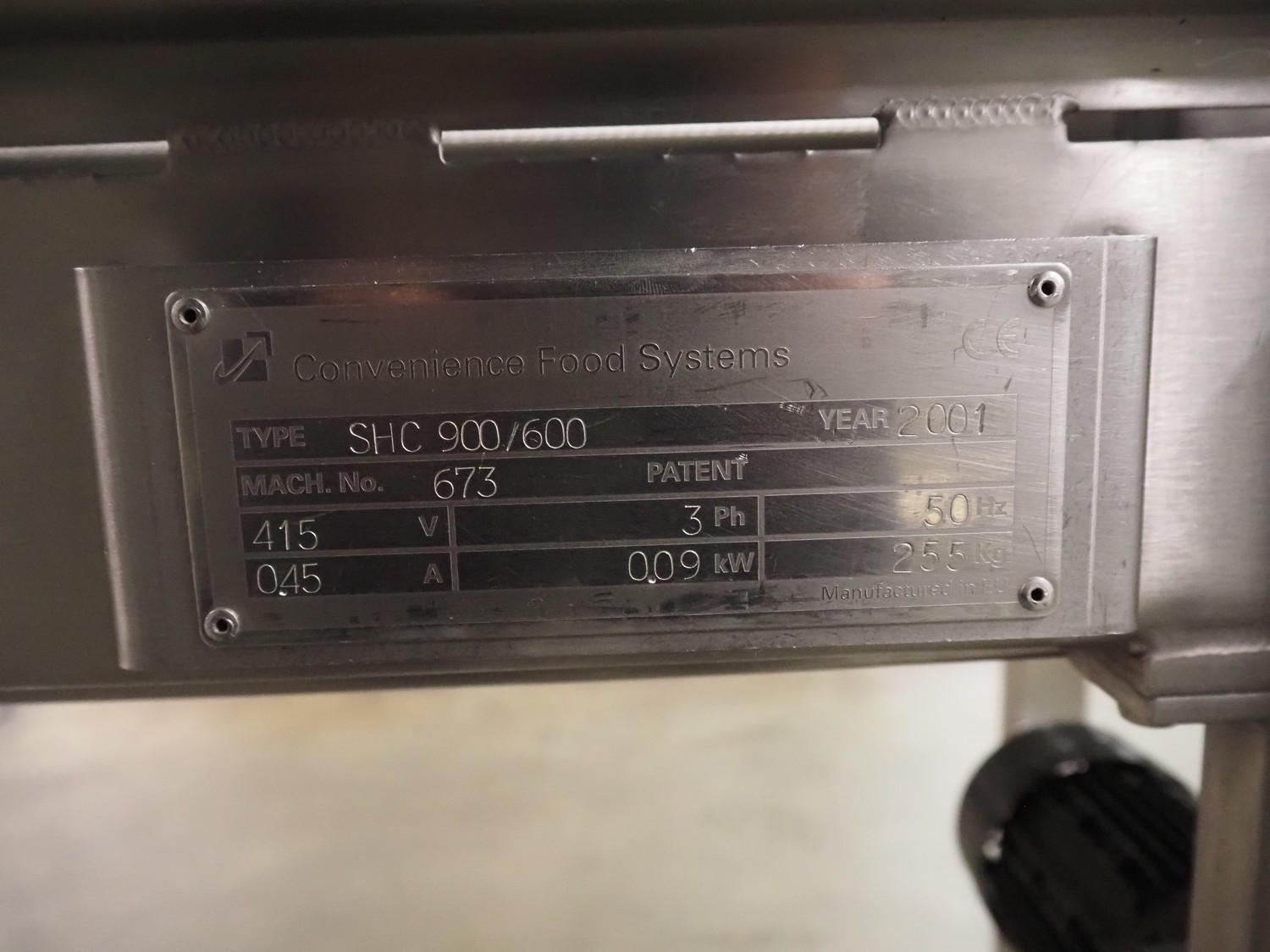 CFS mobile shuttle conveyor, type: SHC900/600, machine number: 673, year of construction: 2001, 3 x 415 V, 50 Hz, 0.09 kW, s/s mesh belt, belt width: 600 mm, shooting length: 1000 mm, weight: 255 kg, dimensions: 2400 mm x 750 mm x 1600 mm.