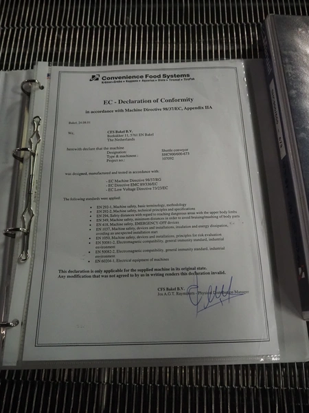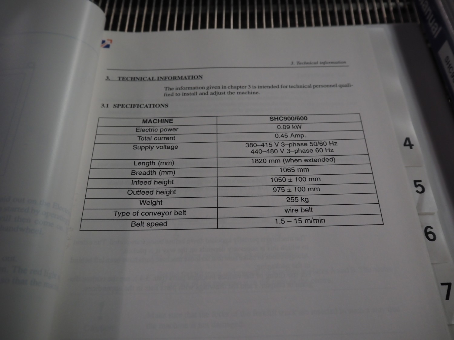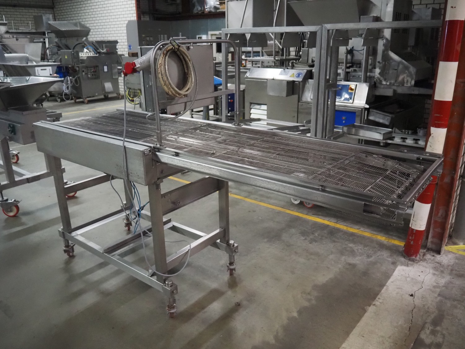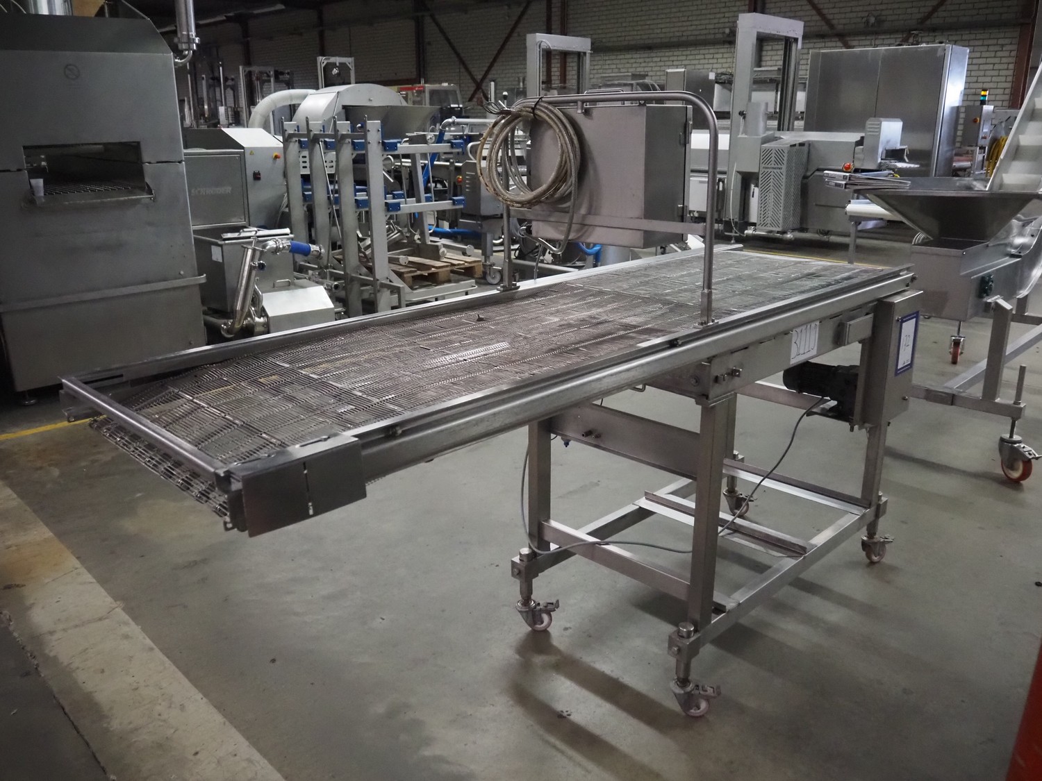 CFS mobile shuttle conveyor, type: SHC900/600, machine number: 673, year of construction: 2001, 3 x 415 V, 50 Hz, 0.09 kW, s/s mesh belt, belt width: 600 mm, shooting length: 1000 mm, weight: 255 kg, dimensions: 2400 mm x 750 mm x 1600 mm.