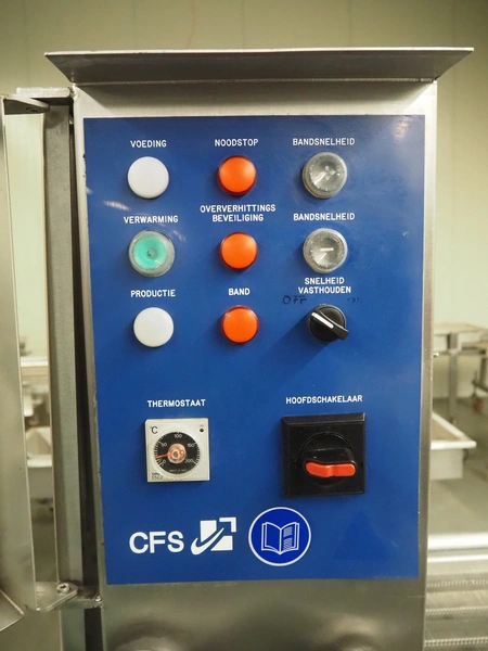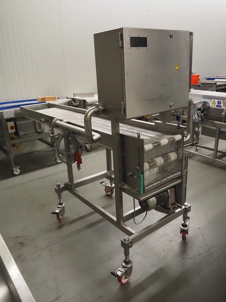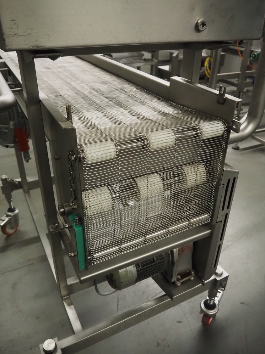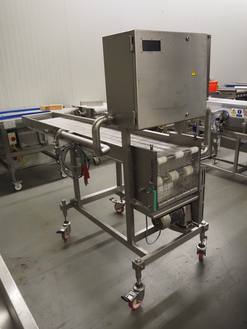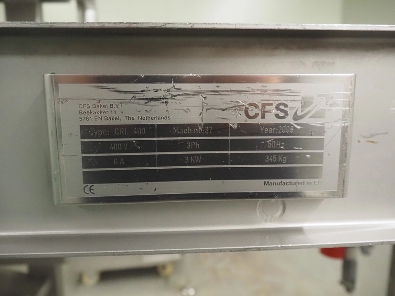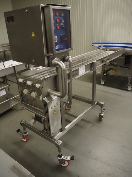CFS mobile heated mesh belt, s/s frame, s/s mesh belt, type: CRL 400, machine number: 37, year of construction: 2008, 400 V, 3 Ph, 50 Hz, 6 A, 3 kW, weight: 345 kg, total dimensions: 2500 mm x 900 mm x 1760 mm.