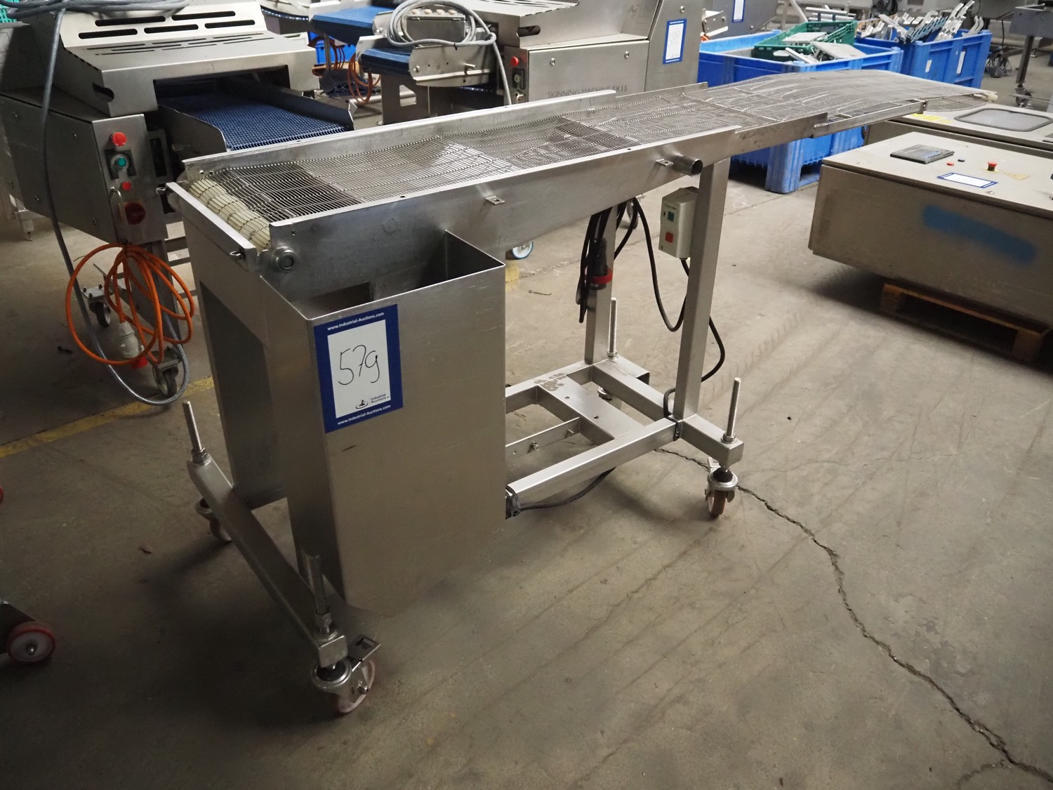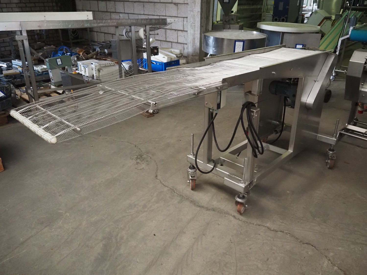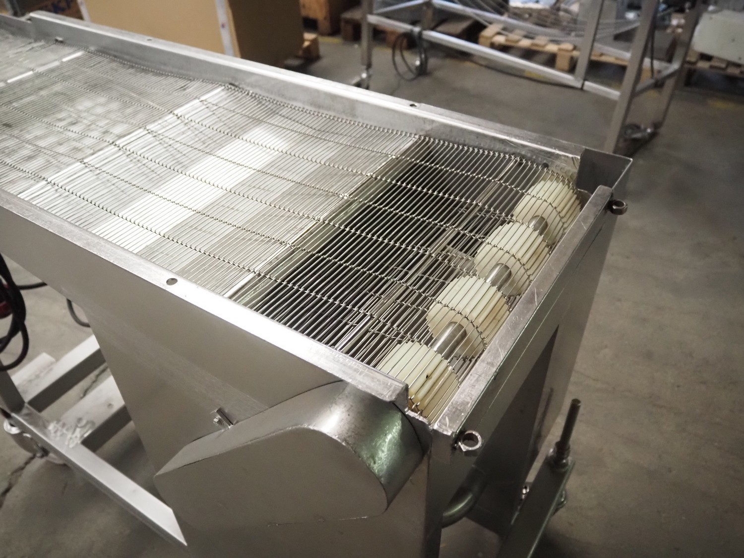 Mobile mesh belt, s/s belt, belt width: 400 mmm, total dimensions: 2450 mm x 800 mm x 1100 mm.