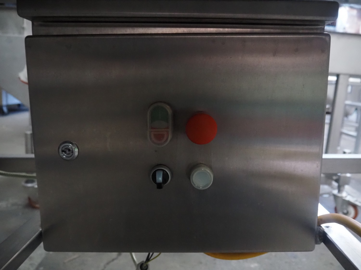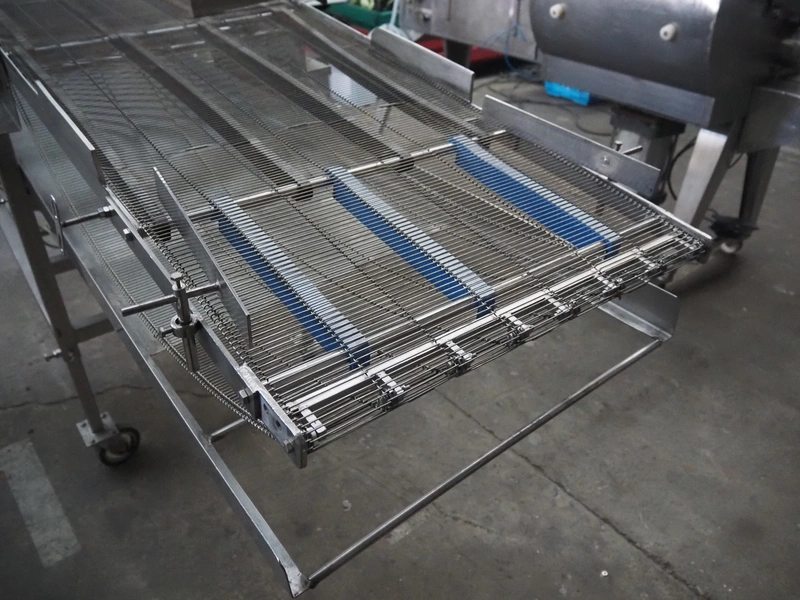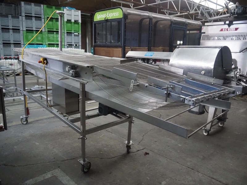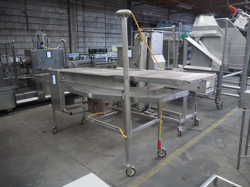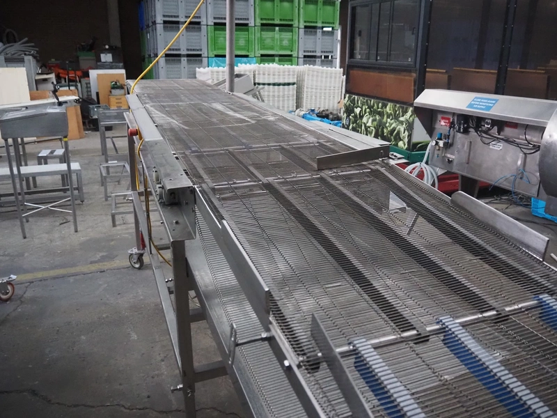 Mobile mesh belt, s/s frame, s/s mesh belt, belt width: 580 mm, total dimensions: 3900 mm x 760 mm x 1850 mm.