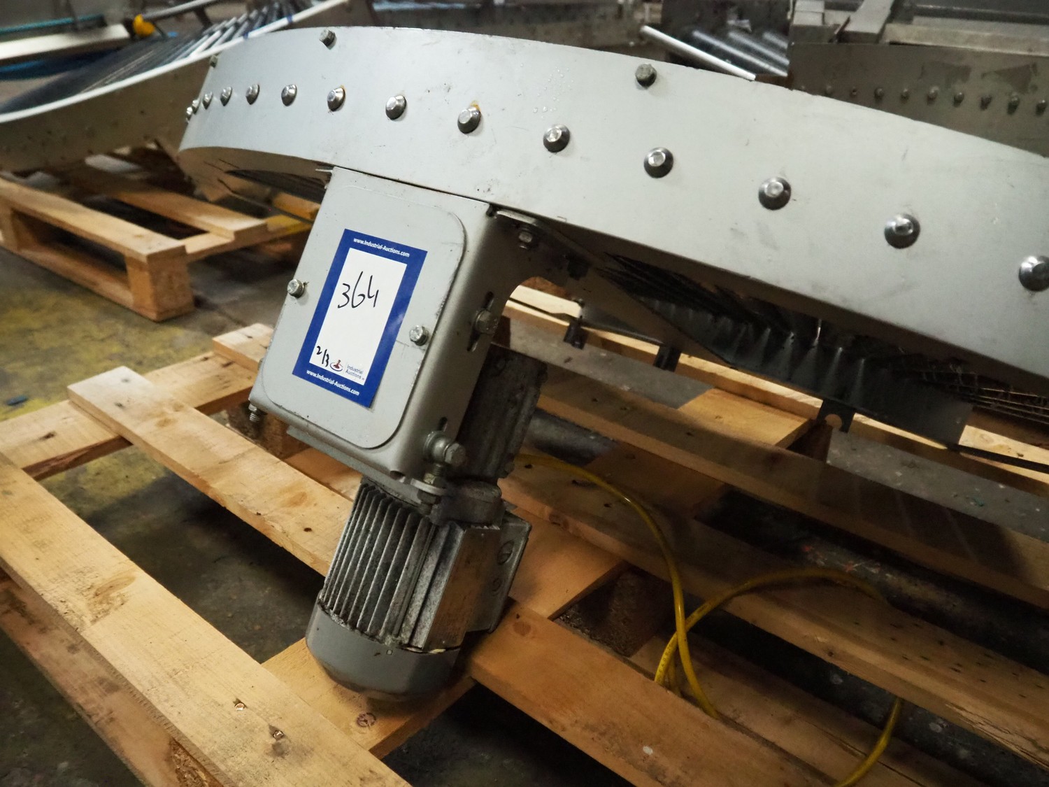 3 pallets with 4 90° curve conveyors, plastic rollers, roller width: 500 mm, total dimensions: (3x) 1200 mm x 800 mm x 600 mm.
