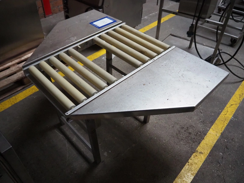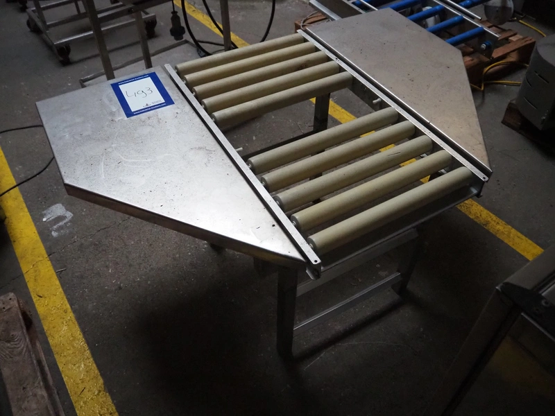 Roller conveyor, s/s frame, plastic rollers, roller width: 480 mm, total dimensions: 1360 mm x 920 mm x 740 mm.