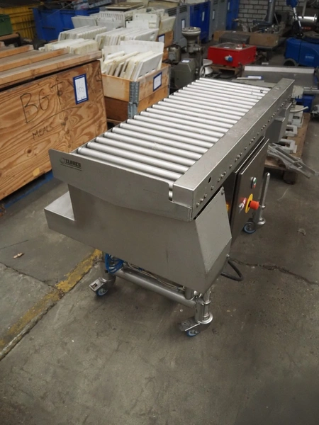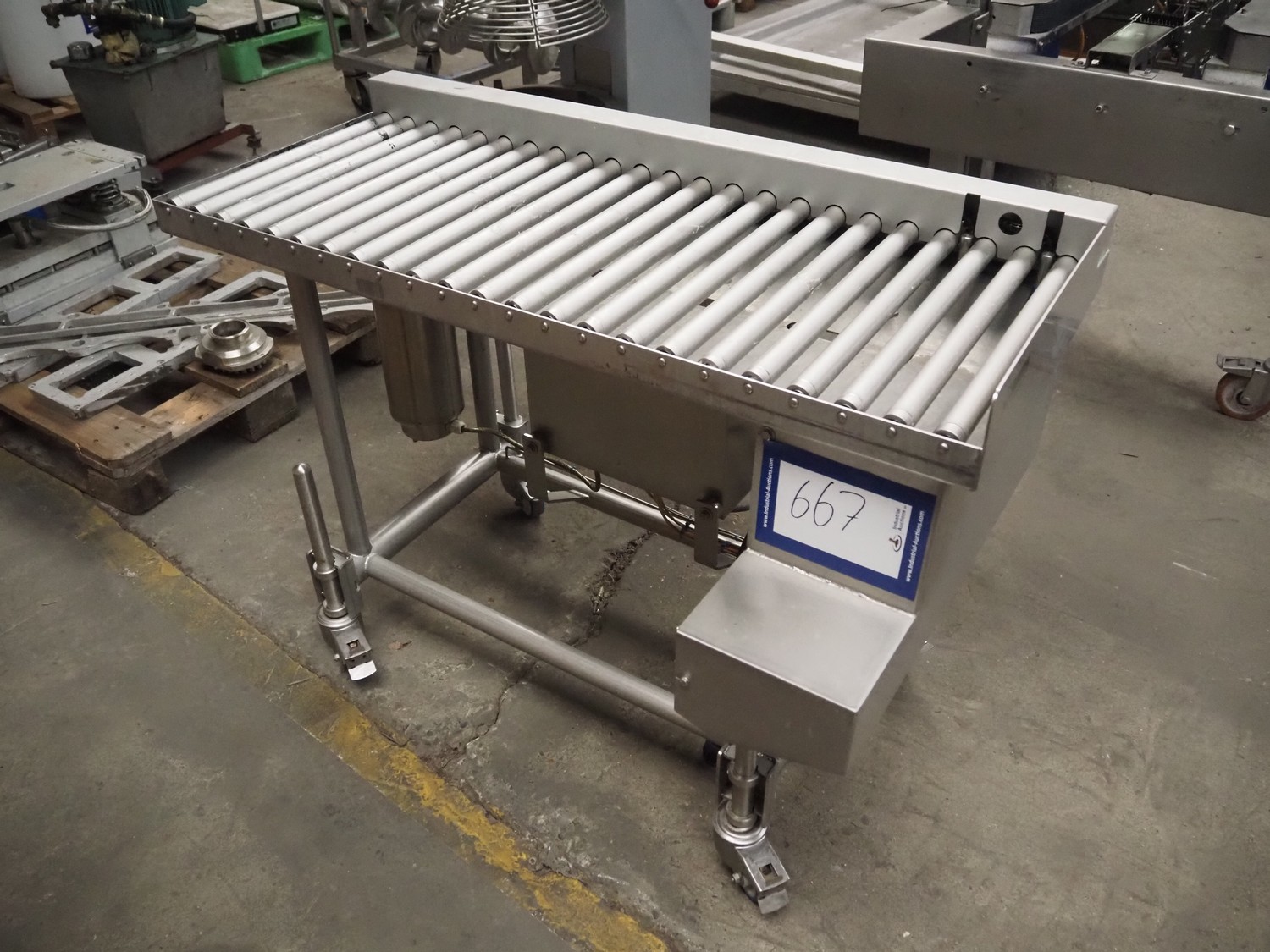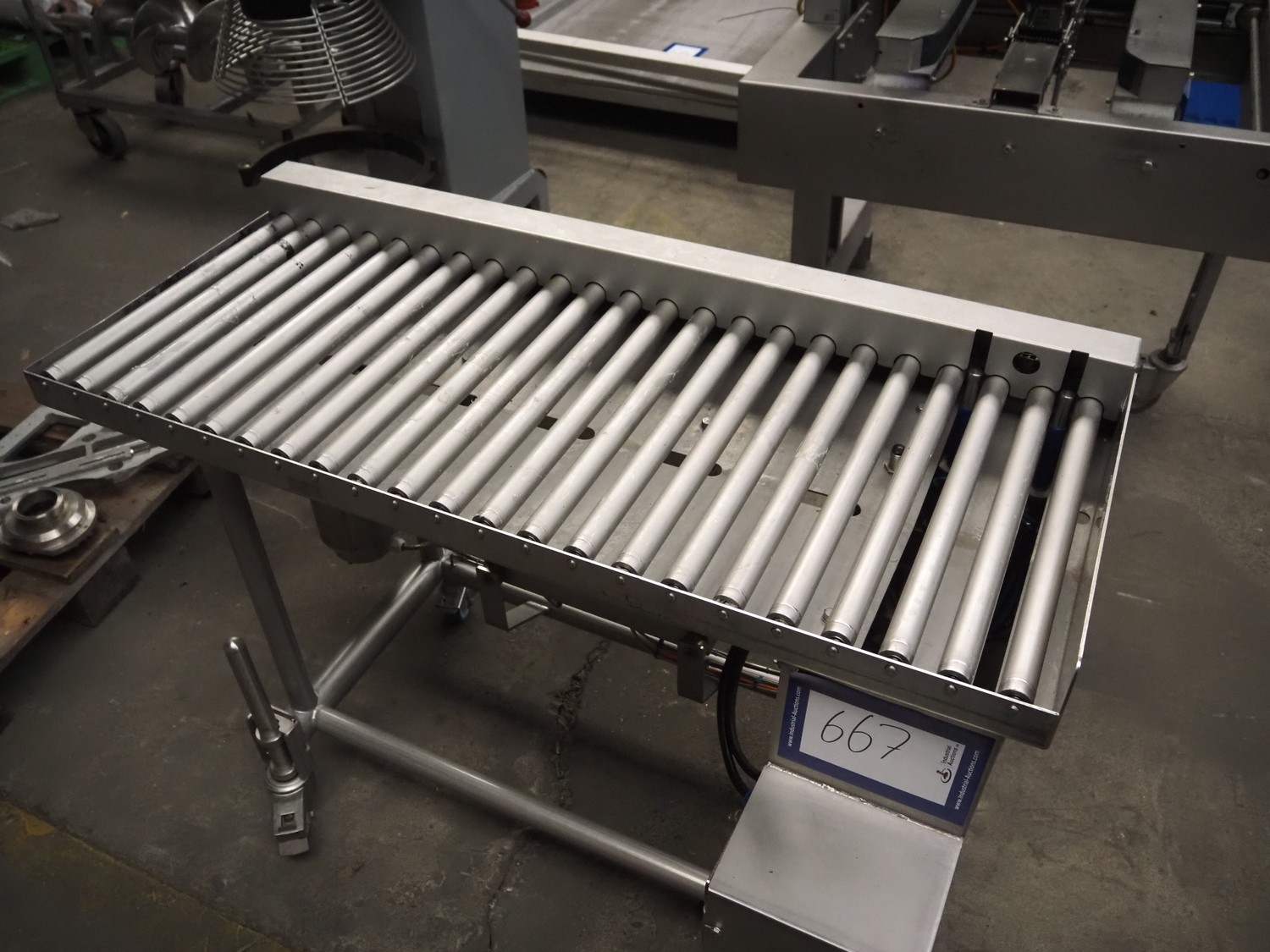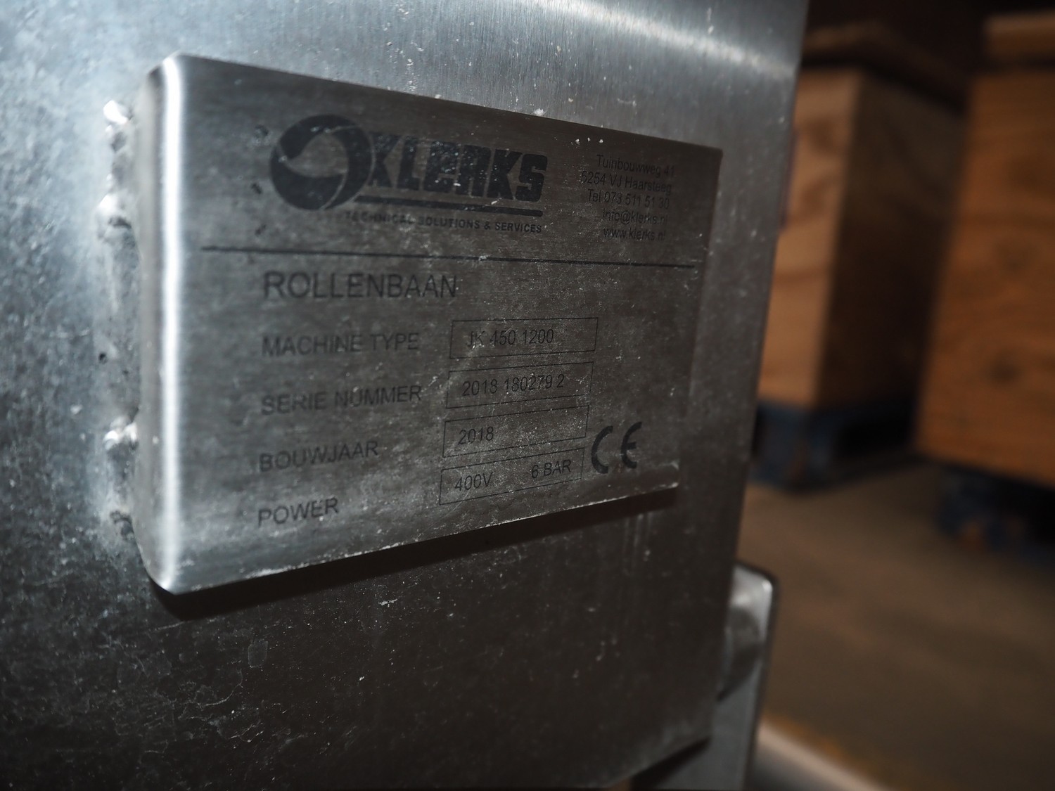 Klerks mobile s/s driven roller conveyor, machine type: JK 450 1200, serial number: 2018 180279 2, year of construction: 2018, 400 V, 6 bar, roller width: 450 mm, total dimensions: 1200 mm x 550 mm x 900 mm.