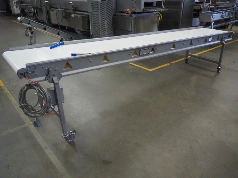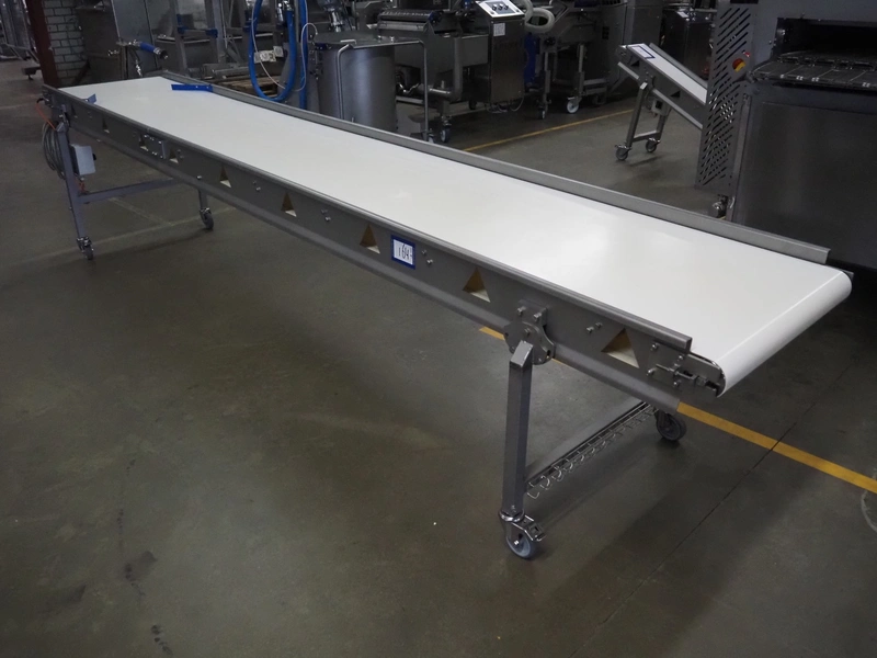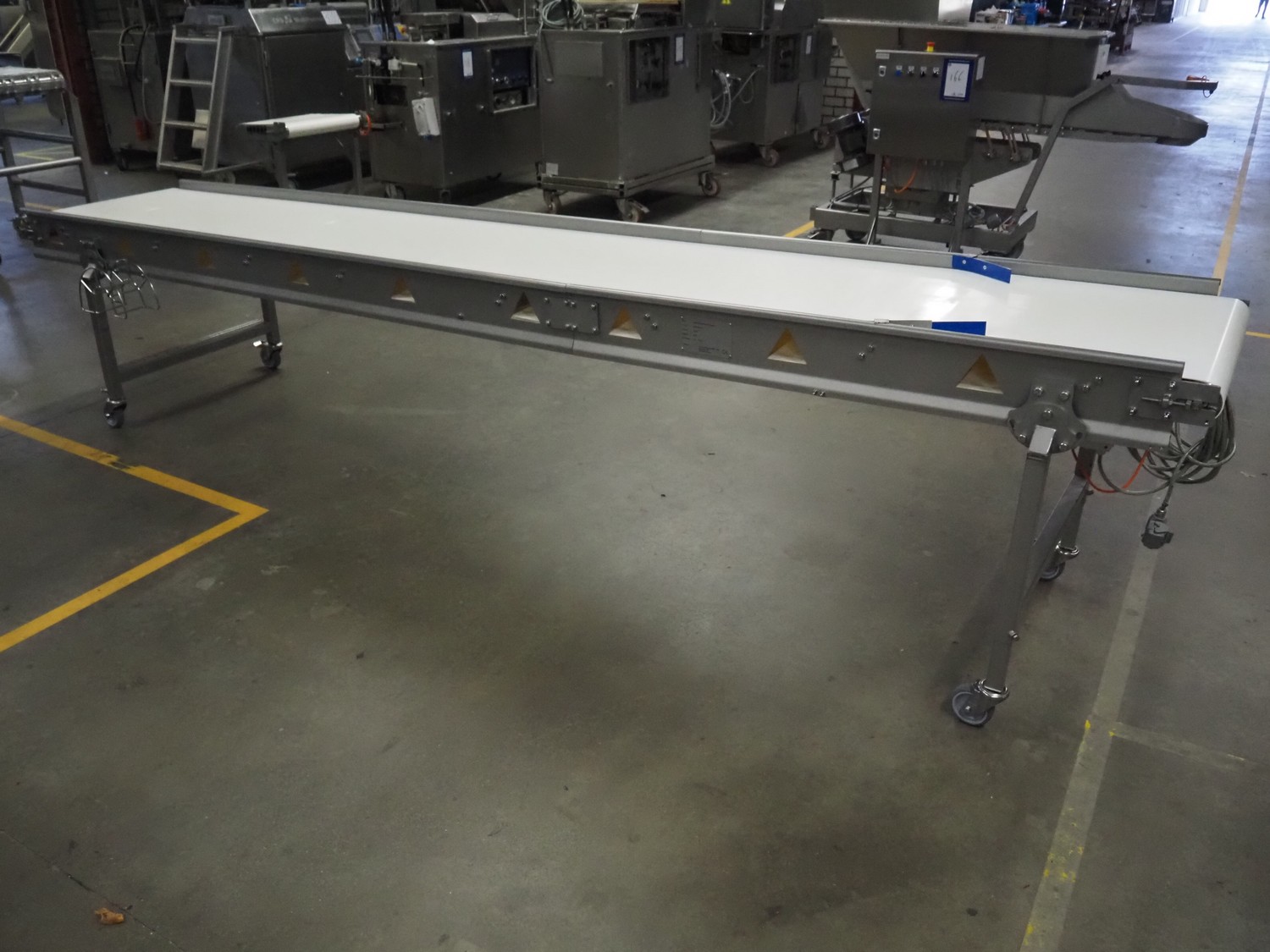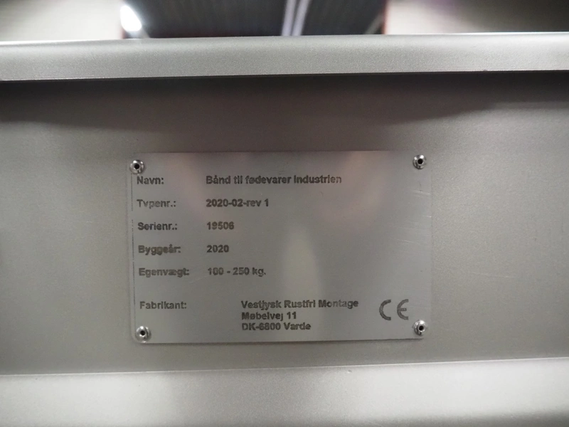 Vestjysk Rustfri Montage mobile transport belt, s/s frame, plastic belt, type number: 2020-02rev 1, serial number: 19506, year of construction: 2020, belt width: 640 mm, total dimensions: 3900 mm x 850 mm x 900 mmm.