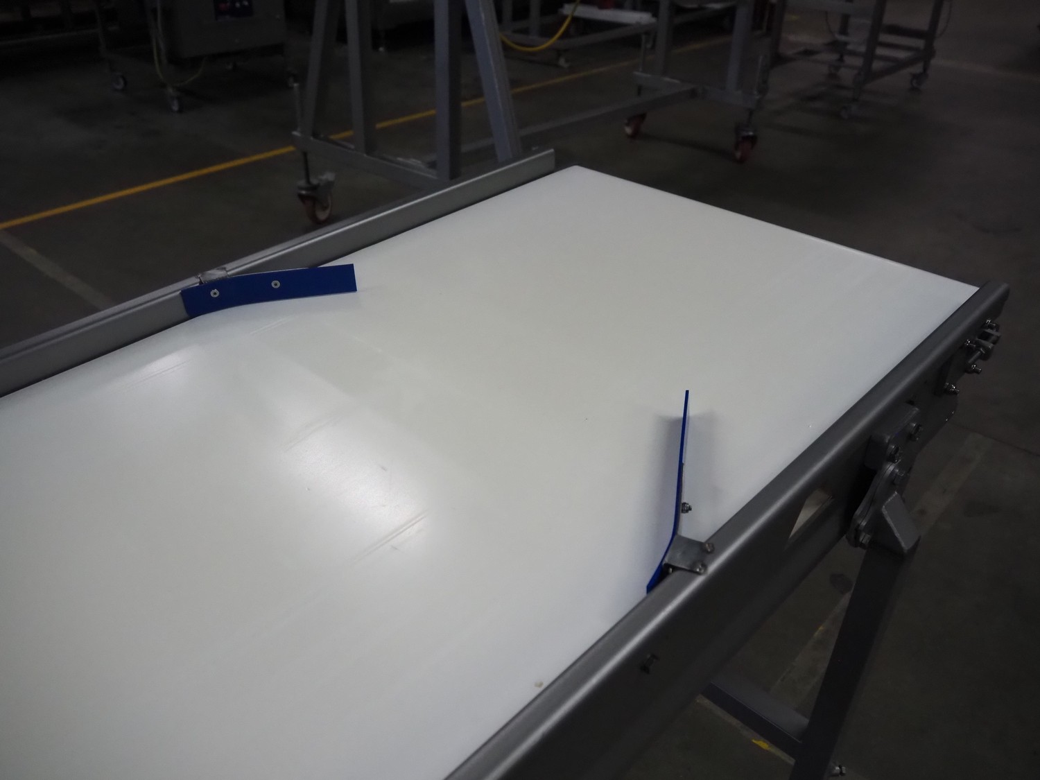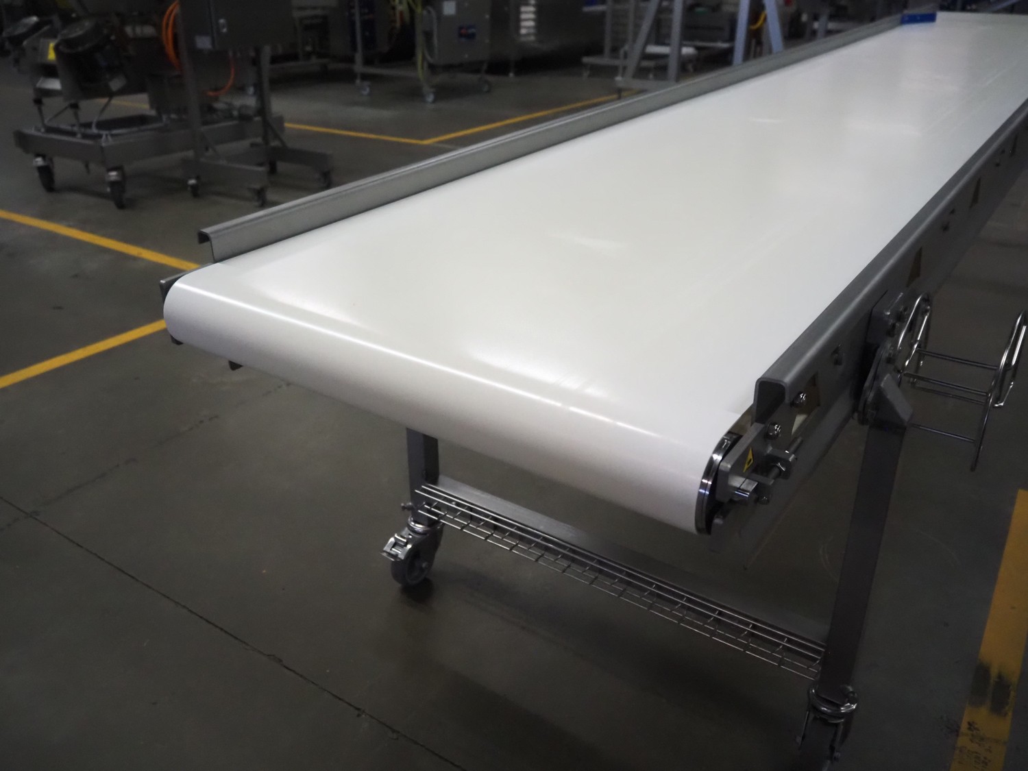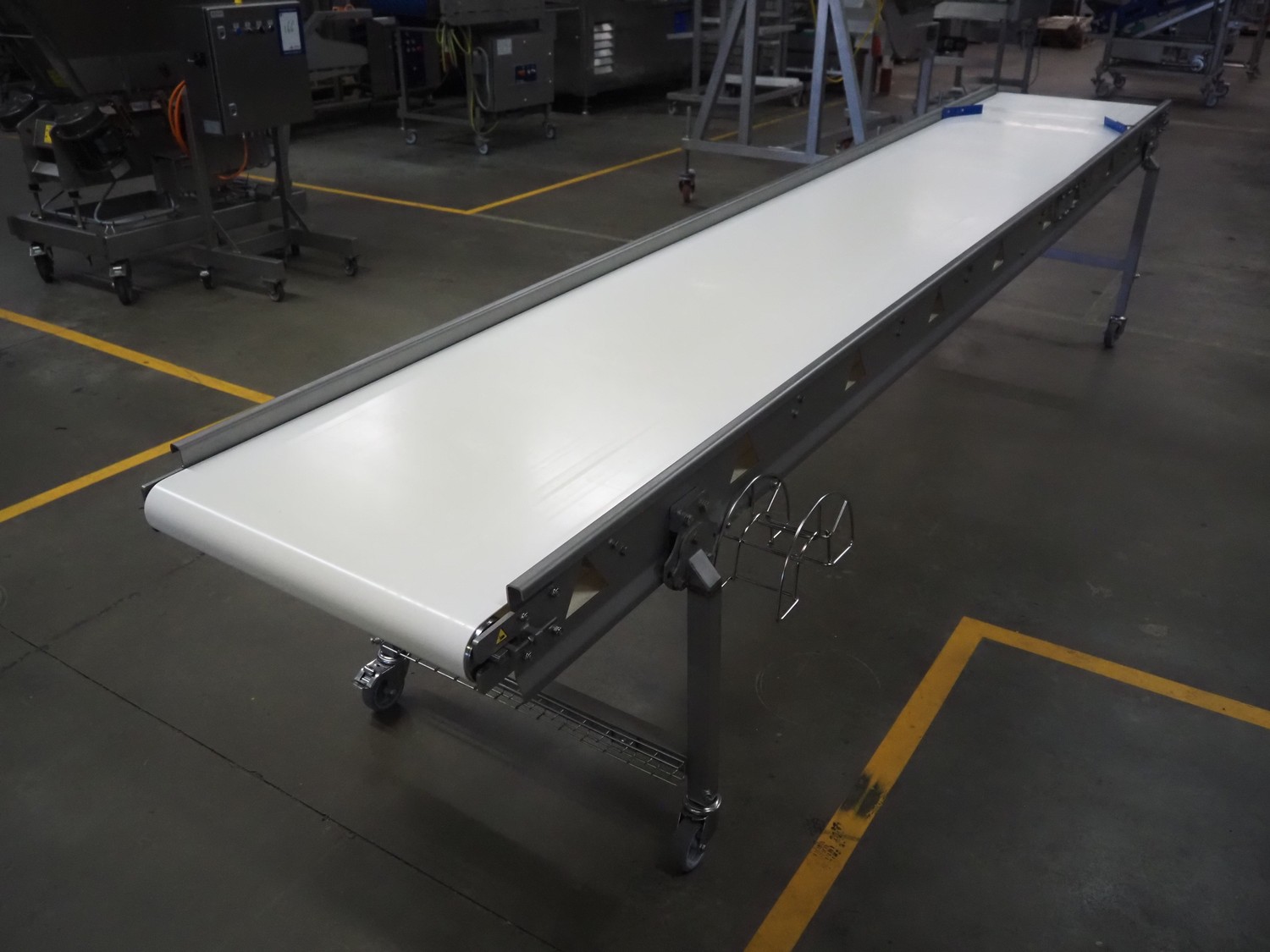 Vestjysk Rustfri Montage mobile transport belt, s/s frame, plastic belt, type number: 2020-02rev 1, serial number: 19506, year of construction: 2020, belt width: 640 mm, total dimensions: 3900 mm x 850 mm x 900 mmm.