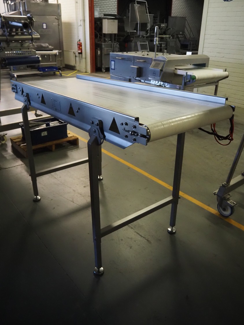 Vestjysk Rustfri Montage mobile transport belt, s/s frame, plastic belt, type number: 2020-01-rev 1, serial number: 19506, year of construction: 2020, belt width: 640 mm, total dimensions: 1900 mm x 750 mm x 1200 mmm.