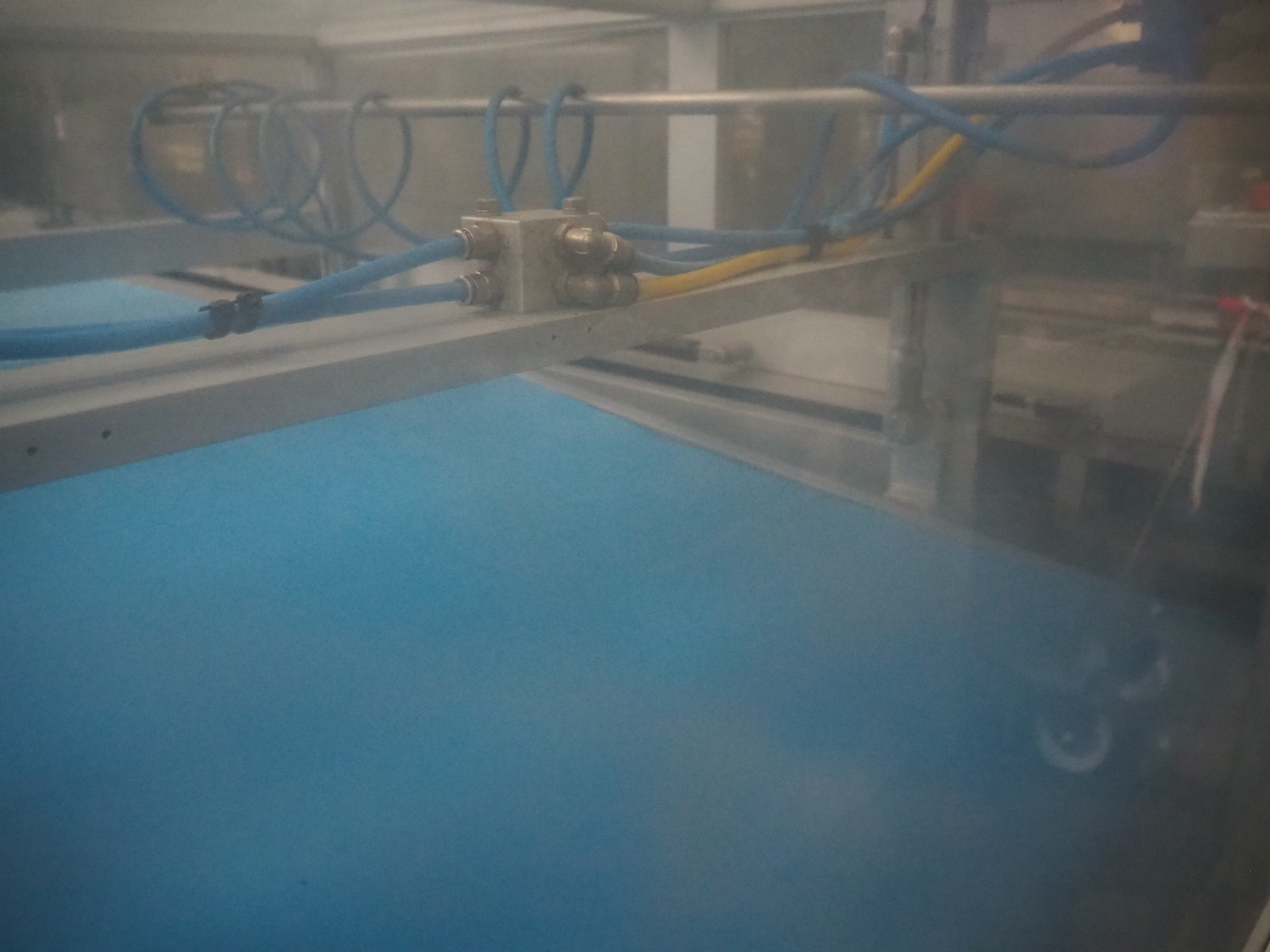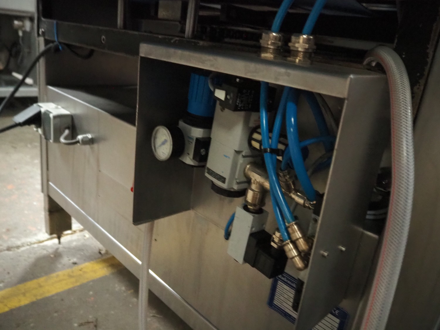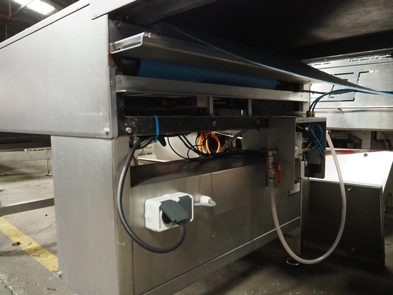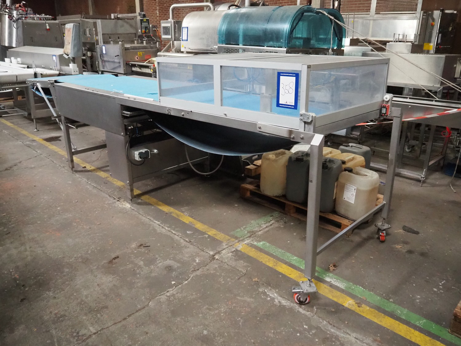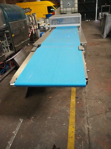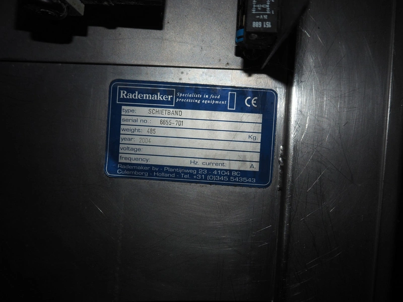Rademaker transport belt, s/s frame, plastic belt, belt width: 740 mm, total dimensions: 4750 mm x 1150 mm x 1405 mm.