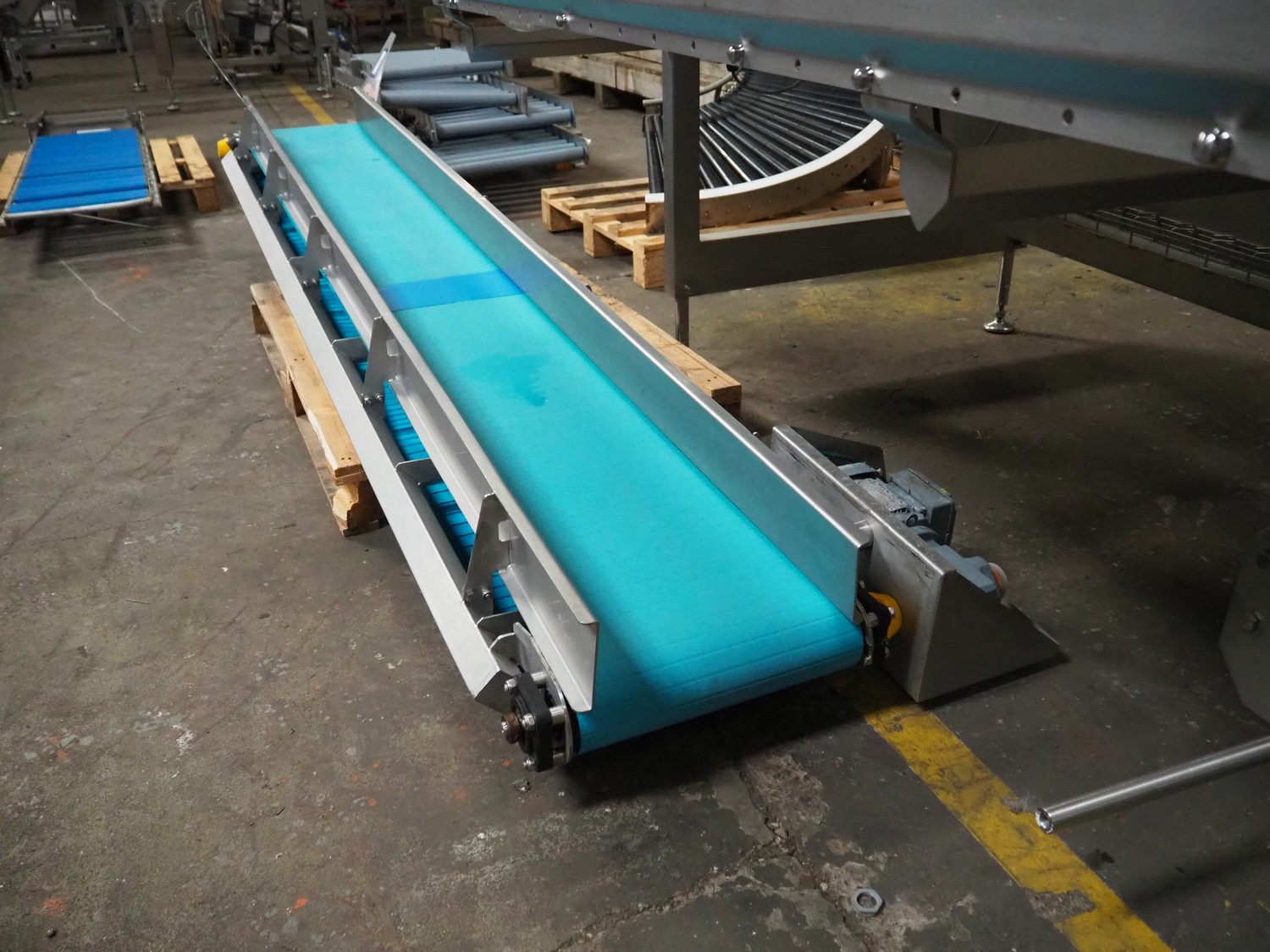 Transport belt, plastic belt, belt width: 380 mm, total dimensions: 2950 mm x 850 mm x 500 mm.