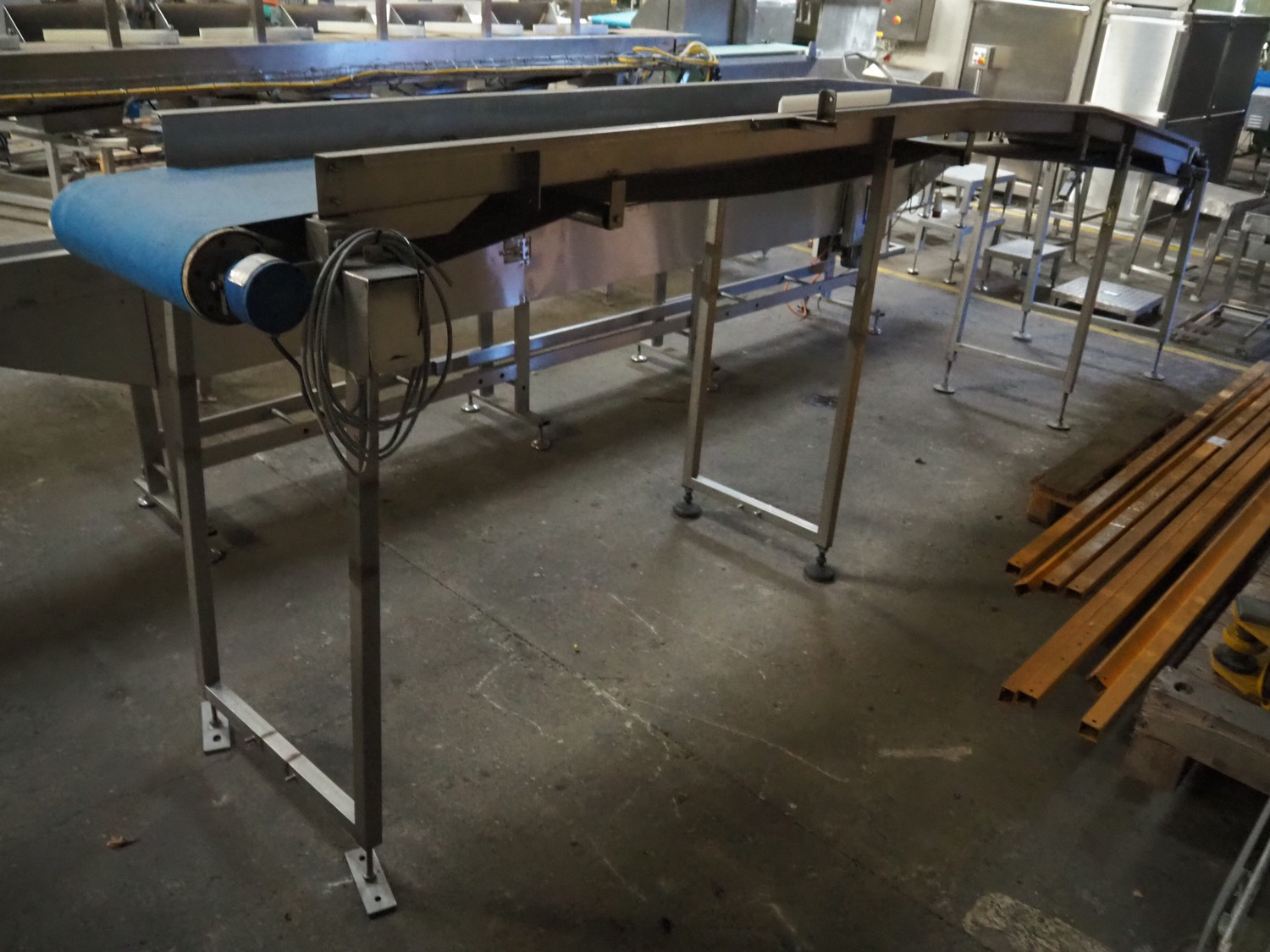 Transport belt, s/s frame, plastic belt, belt width: 485 mm, total dimensions: 5080 mm x 820 mm x 1500 mm.