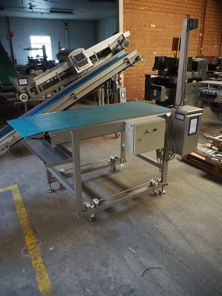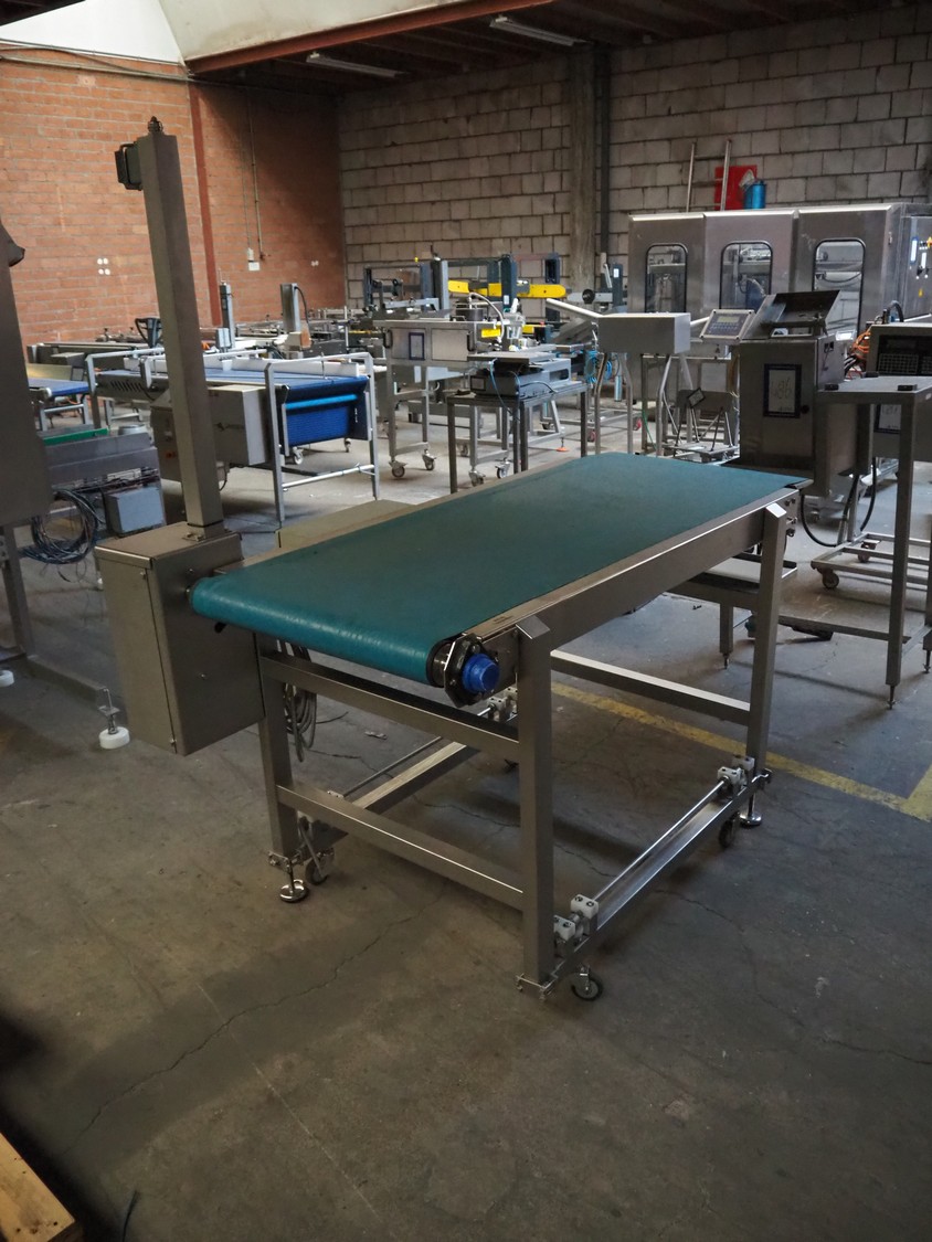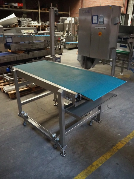 Rademaker mobile transport belt, s/s frame, plastic belt, type: VRIEZERINVOERBAAN, serial number: 6655-702, year of construction; 2004, weight: 350 KG, belt width: 670 mm, total dimensions: 1750 mm x 1080 mm x 1890 mm.