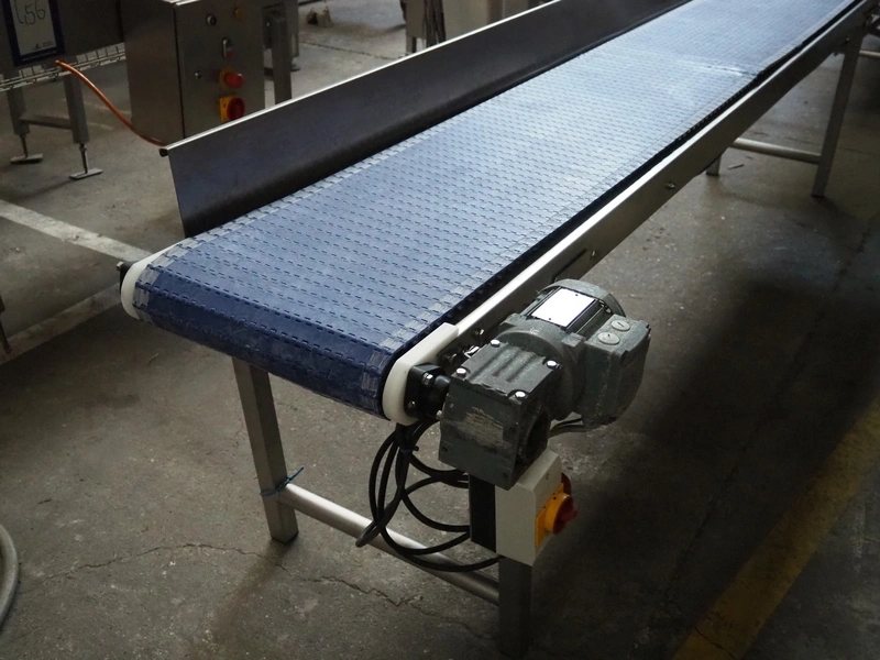 Hellings transport belt, s/s frame, plastic belt, belt width: 395 mm, total dimensions: 3000 mm x 700 mm x 845 mm.