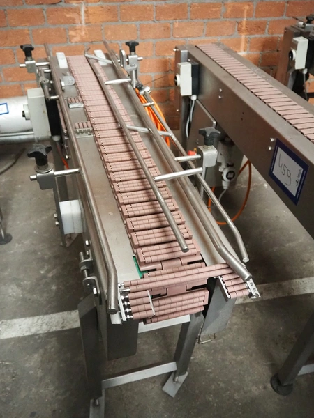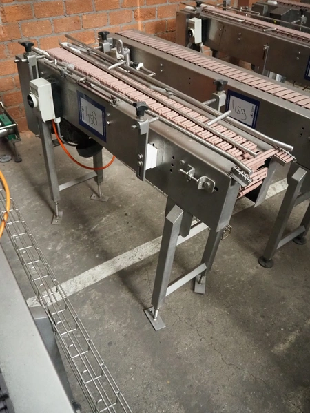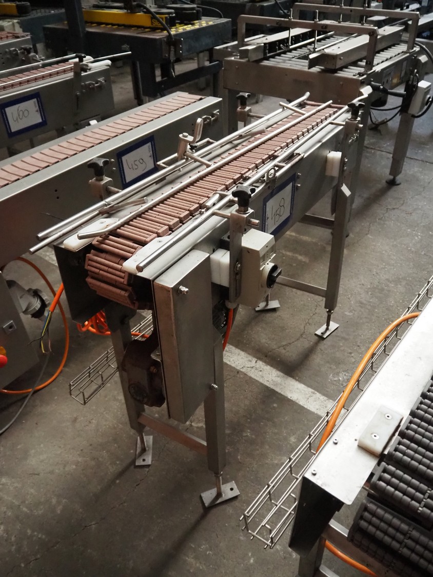 Transport belt, s/s frame, plastic roller belt, belt width: 110 mm, total dimensions: 1300 mm x 500 mm x 1000 mm.
