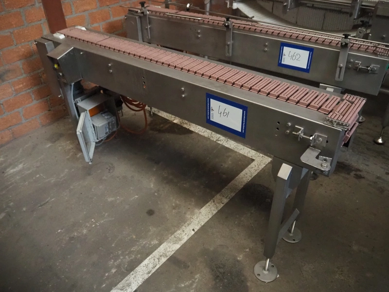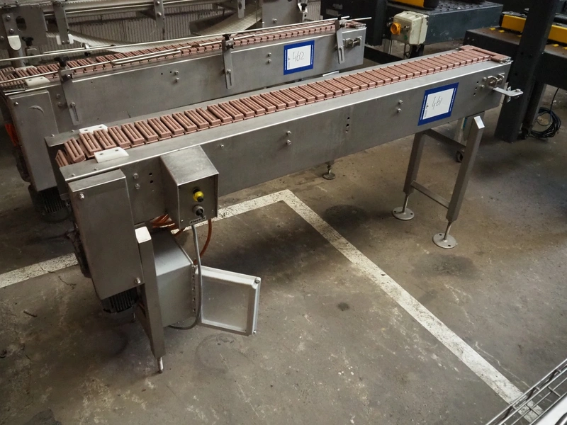 Transport belt, s/s frame, plastic belt with rollers, belt width: 110 mm, total dimensions: 1820 mm x 480 mm x 930 mm.