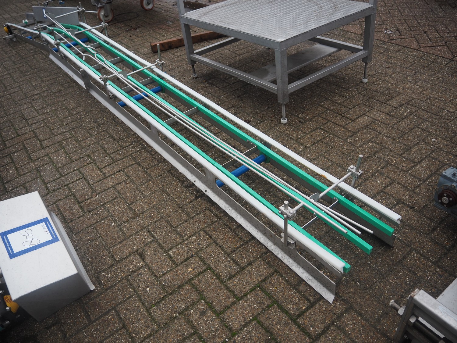S/s frame for transport belt, maximum belt width: 320 mm, total dimensions: 5000 mm x 700 mm x 600 mm.
