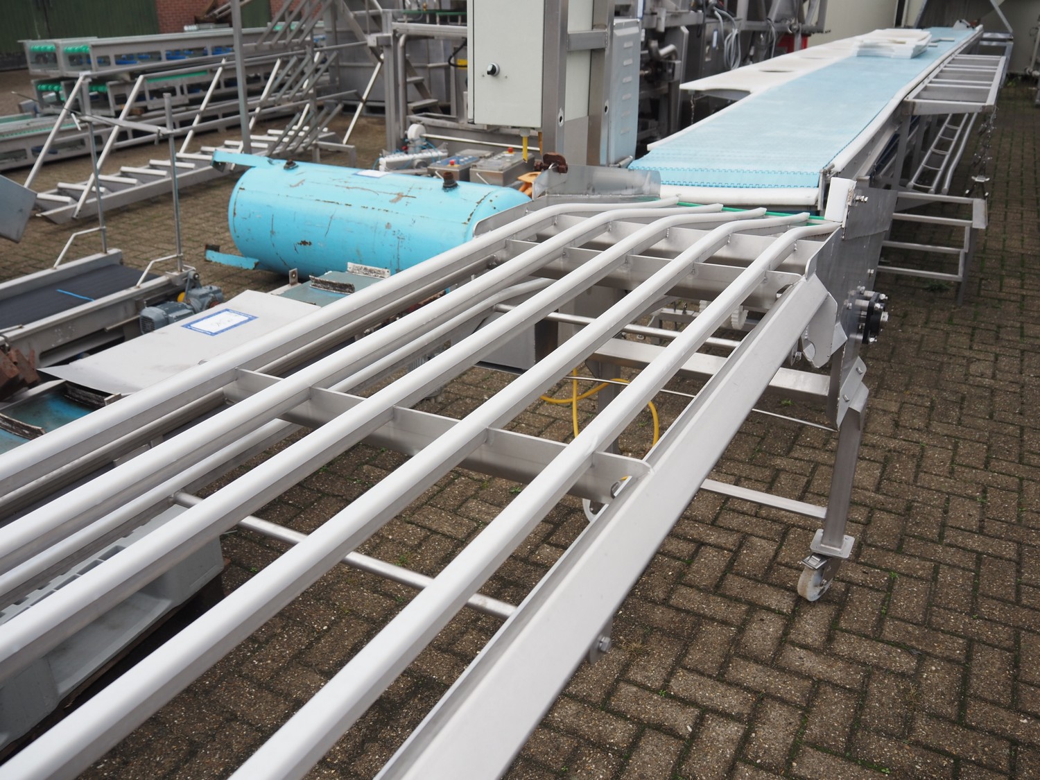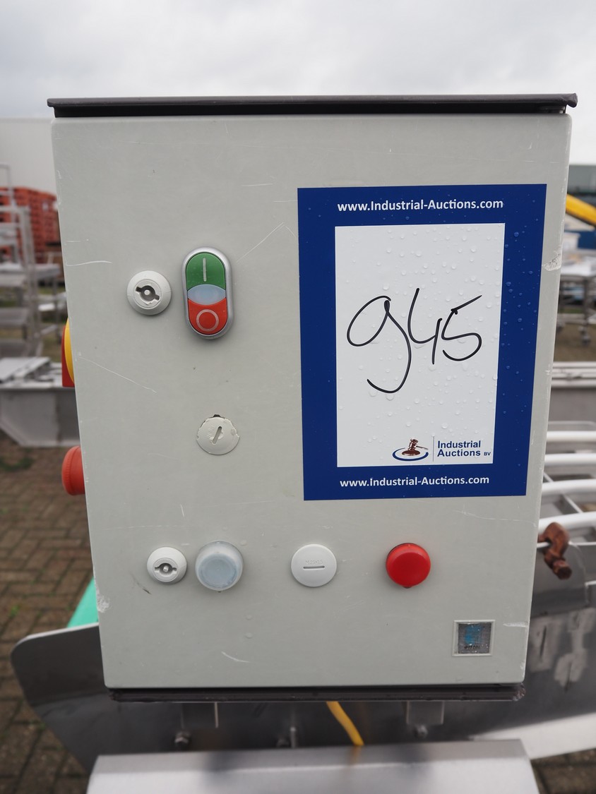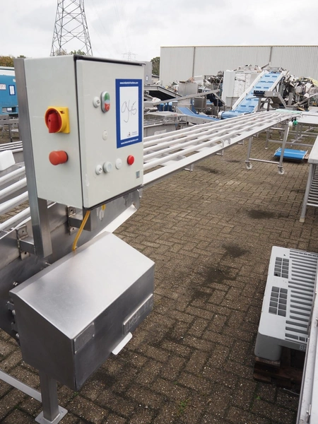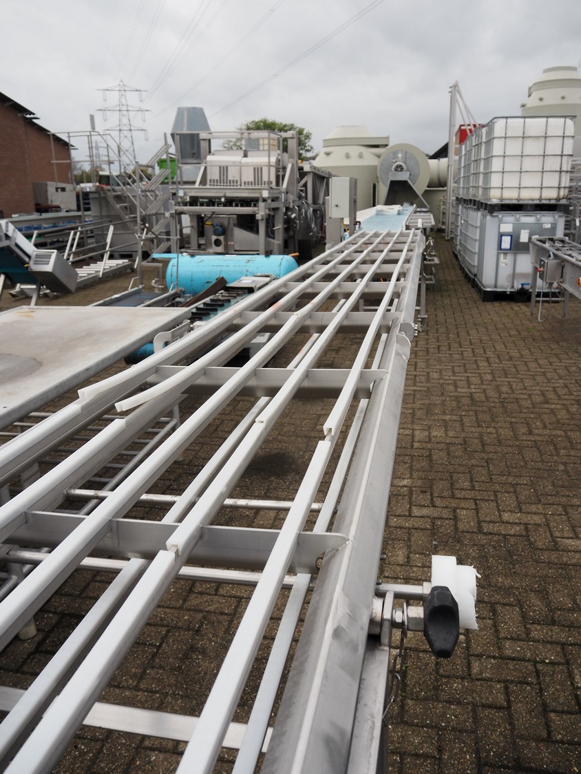 De Jager RVS mobile transport belt, type: 30130520, year of construction: 01/2014, maximum belt width: 600 mm, total dimensions: 9600 mm x 1050 mm x 1620 mm. Without belt.