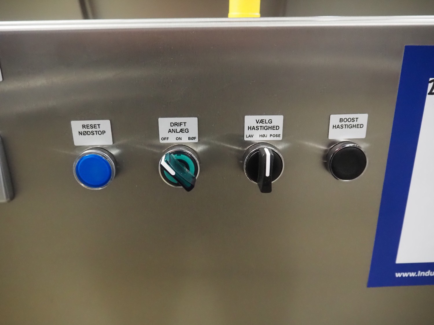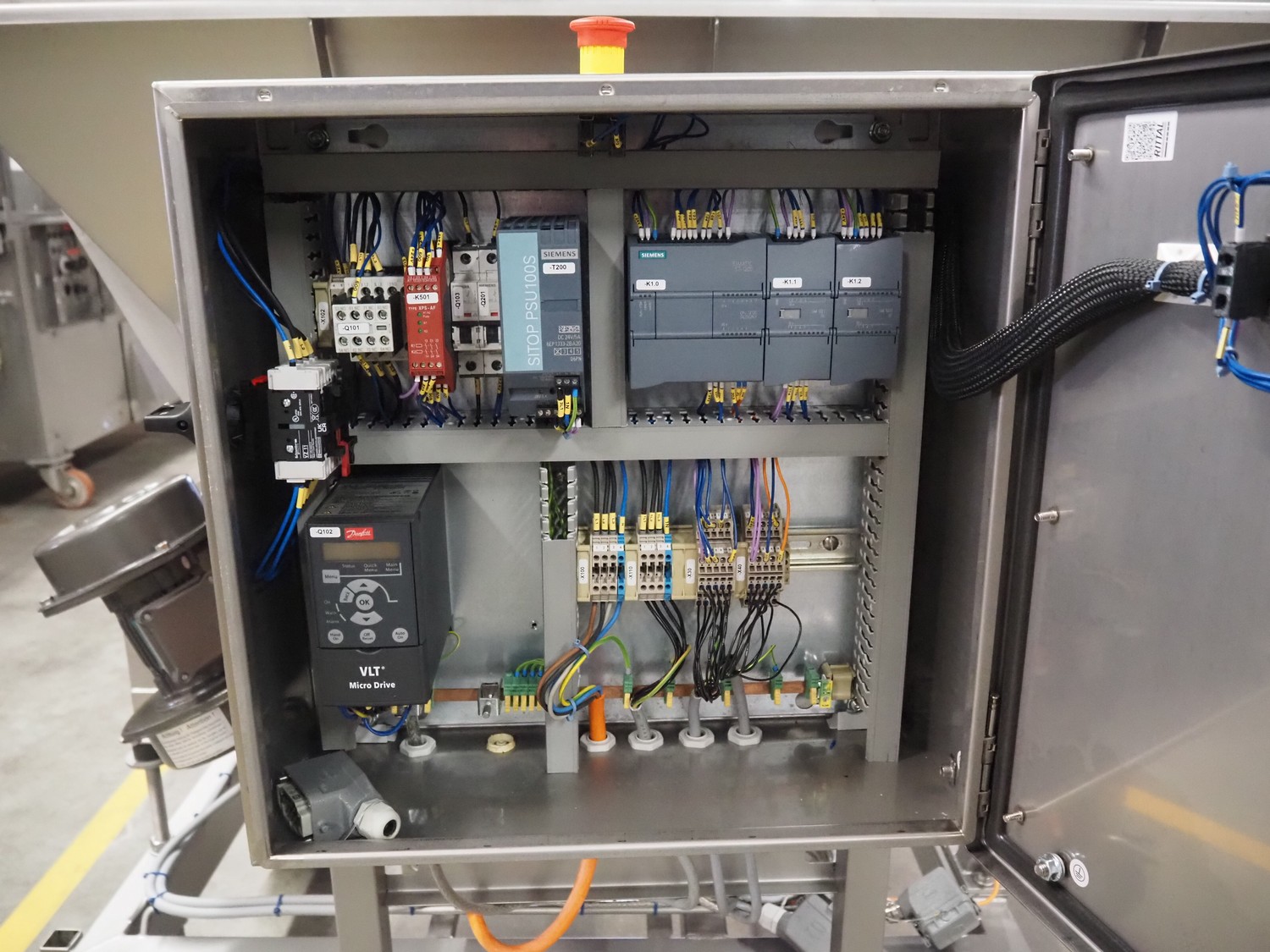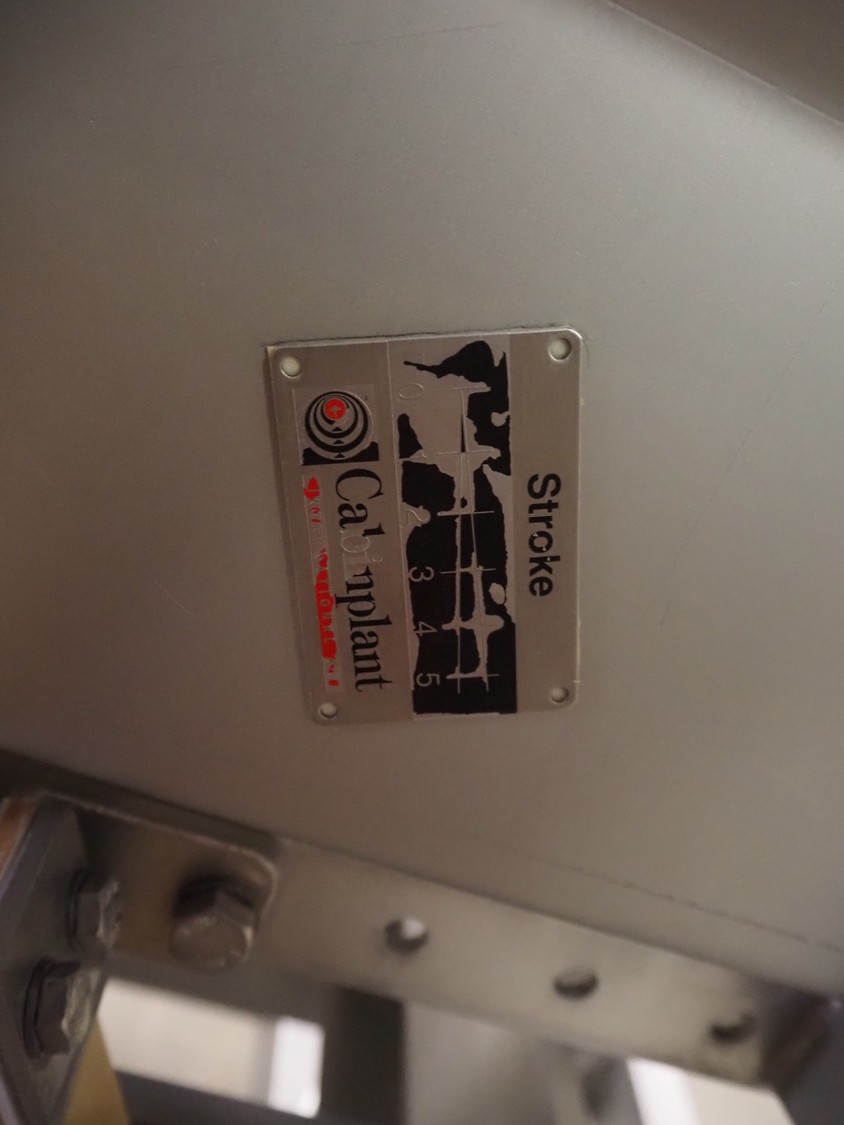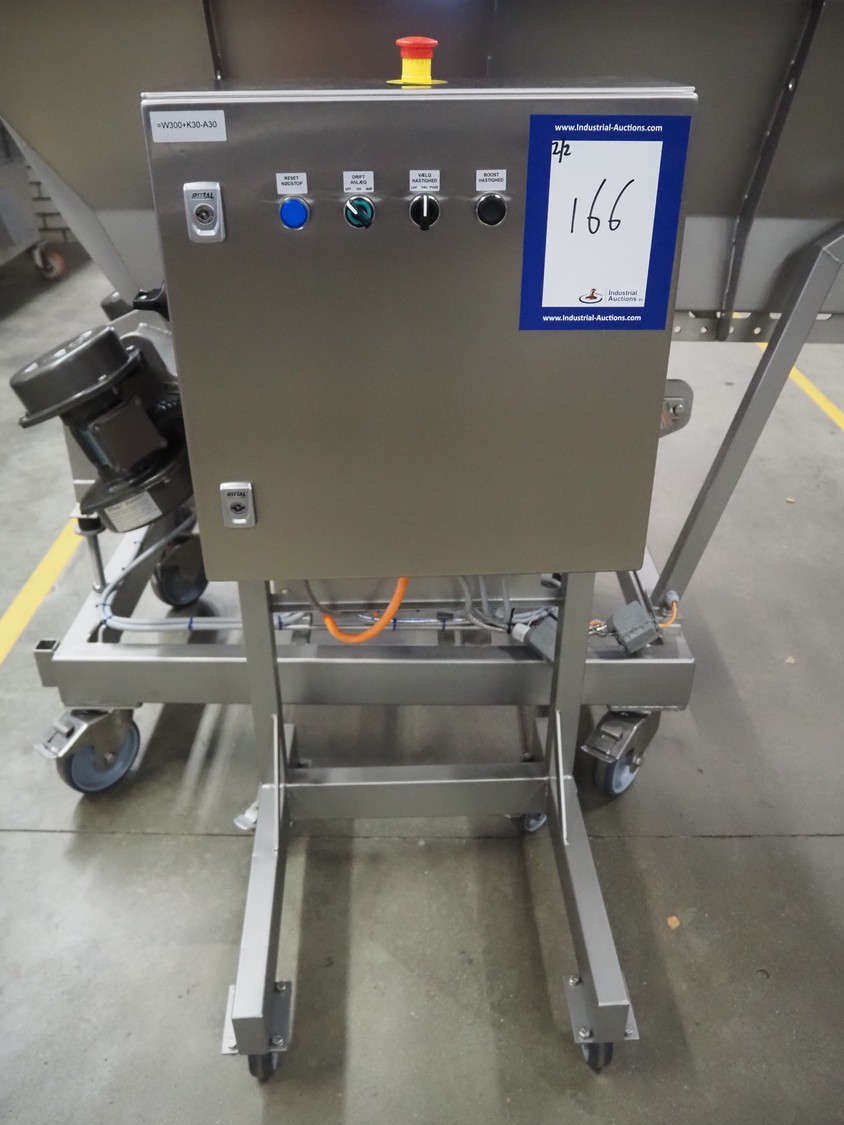 Cabinplant mobile s/s vibrating gutter, type: CR-030/157BTM, serial number: 108675-001, year of construction: 2012, 400V, 50Hz, 0.3kW, weight: 217 kg, gutter width: 315 mm, gutter length: 1470 mm, stroke: 1-5 mm, outfeed height: 800 mm, total dimensions: 2250 mm x 1400 mm x 1700 mm.