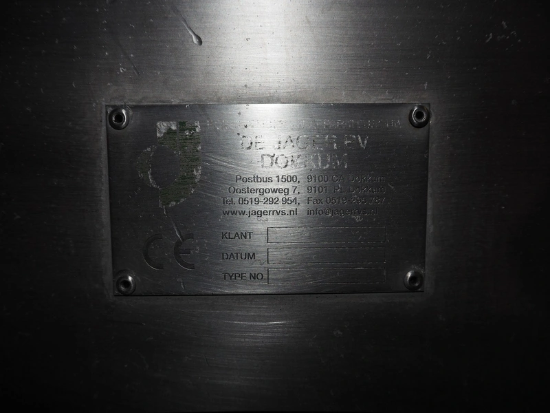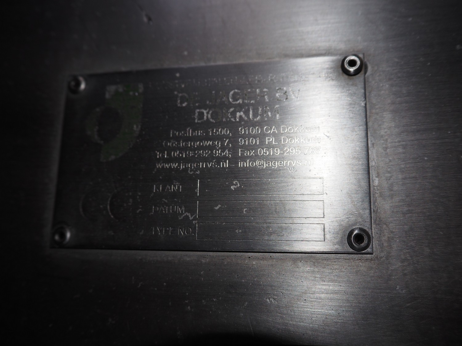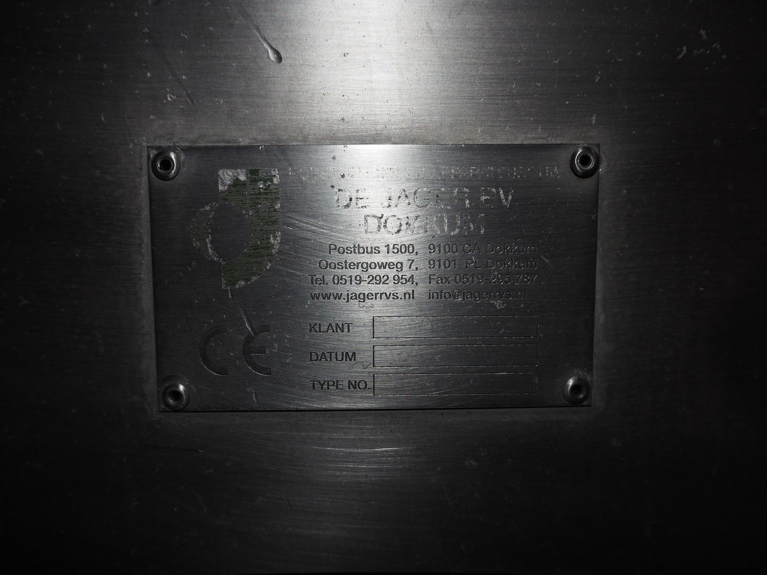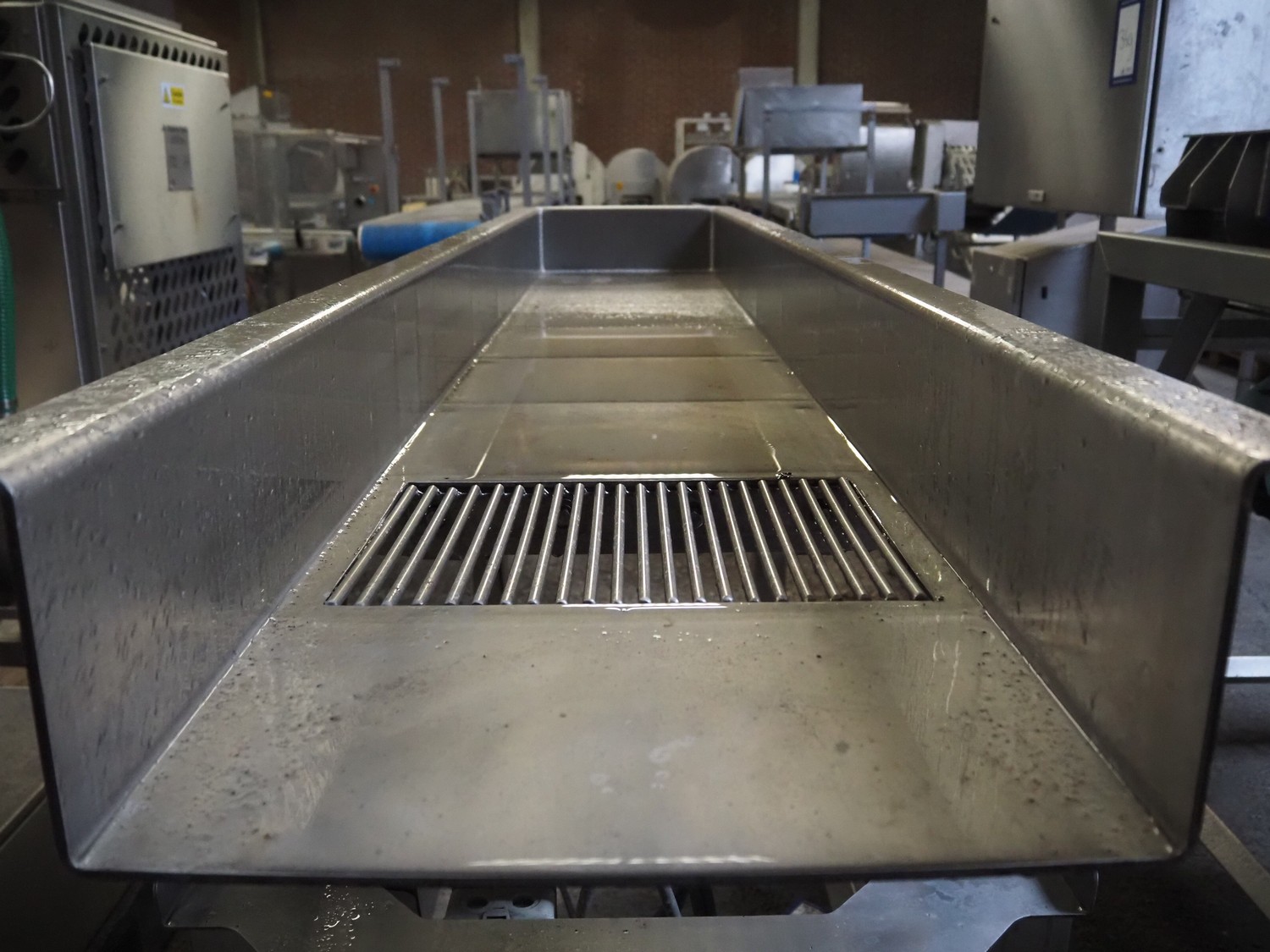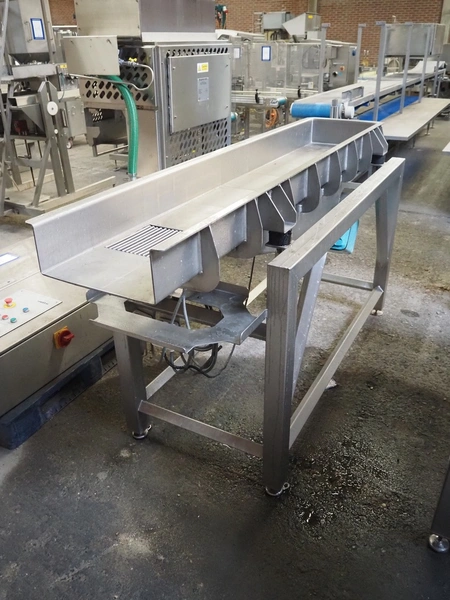 De Jager BV s/s vibrating gutter, dimensions: 2250 mm x 780 mm x 1220 mm.