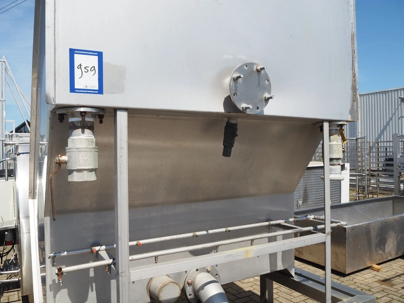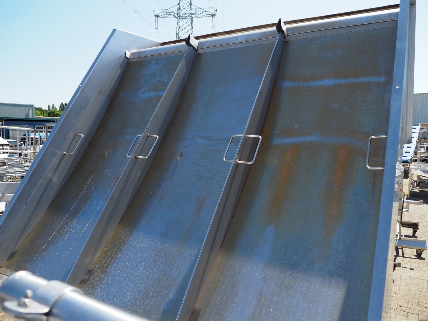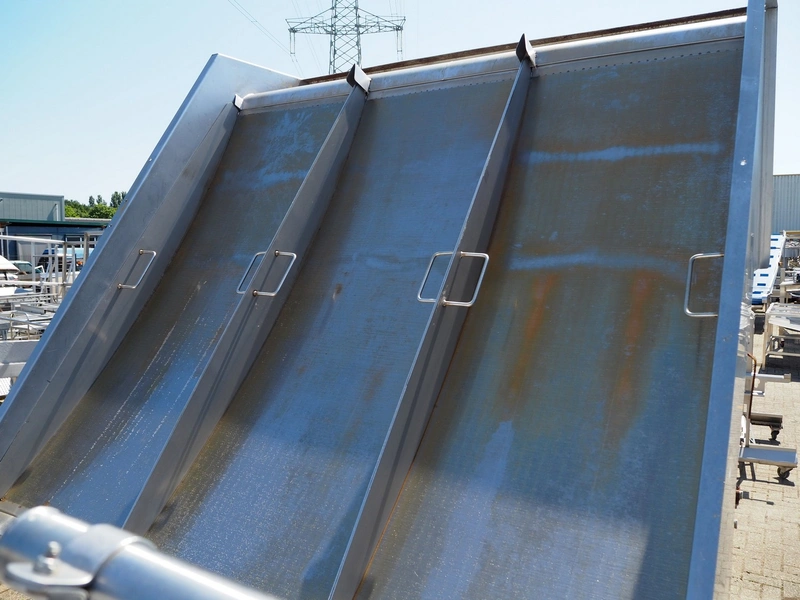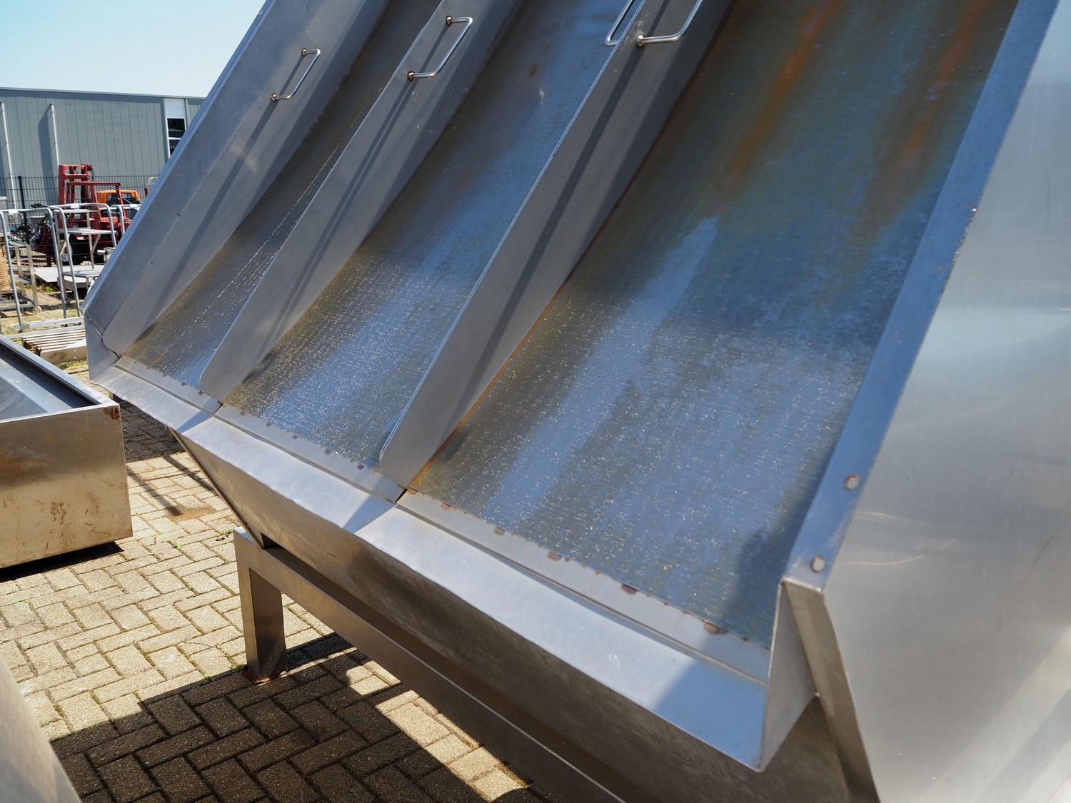 S/s screen filter for water treatment, width sieve: (3x) 656 mm, total dimensions: 2450 mm x 1700 mm x 2750 mm.