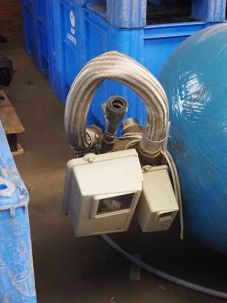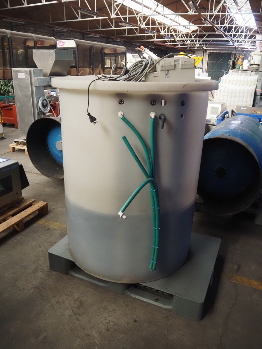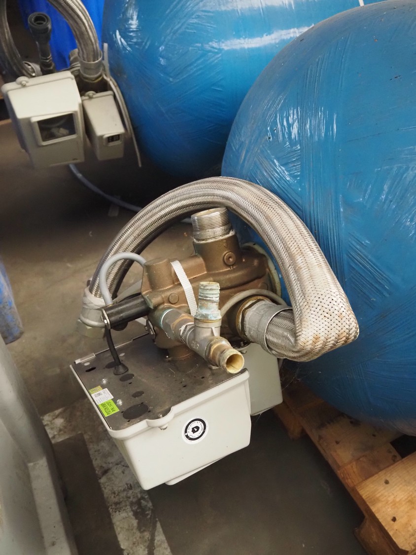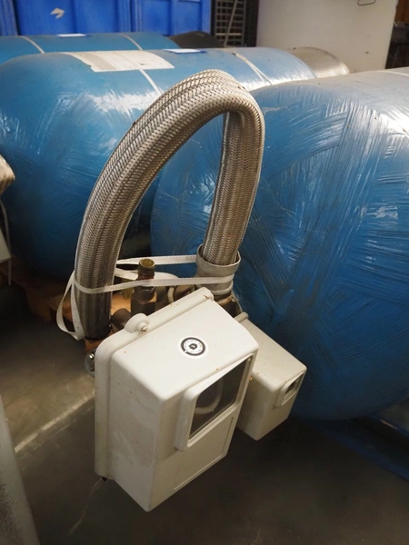 Pentair Water water softening installation, consisting of 3 Structural Composite tanks with PE inner shell, year of construction: 2005, volume: 712 liter, max/min operating pressure: 0/10 bar, operating temperature: 1/50 °C, diameter tanks: 800 mm, height: 2100 mm, total height: 2450 mm, plastic storage barrel for salt, diameter vessel: 1100 mm, height: 1300 mm.