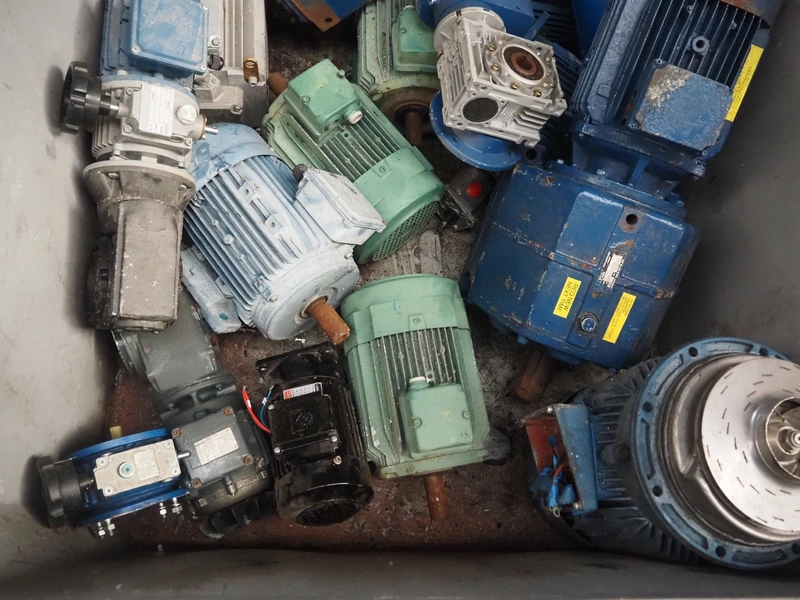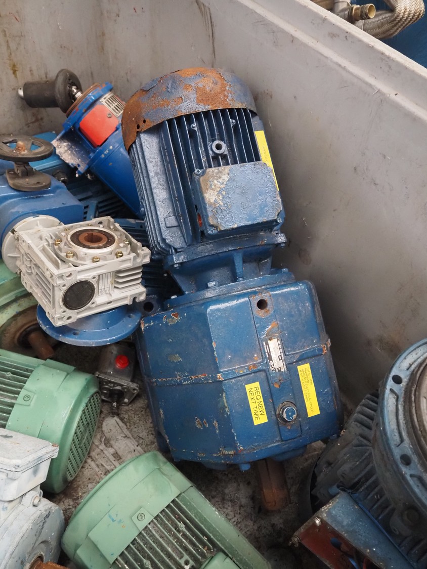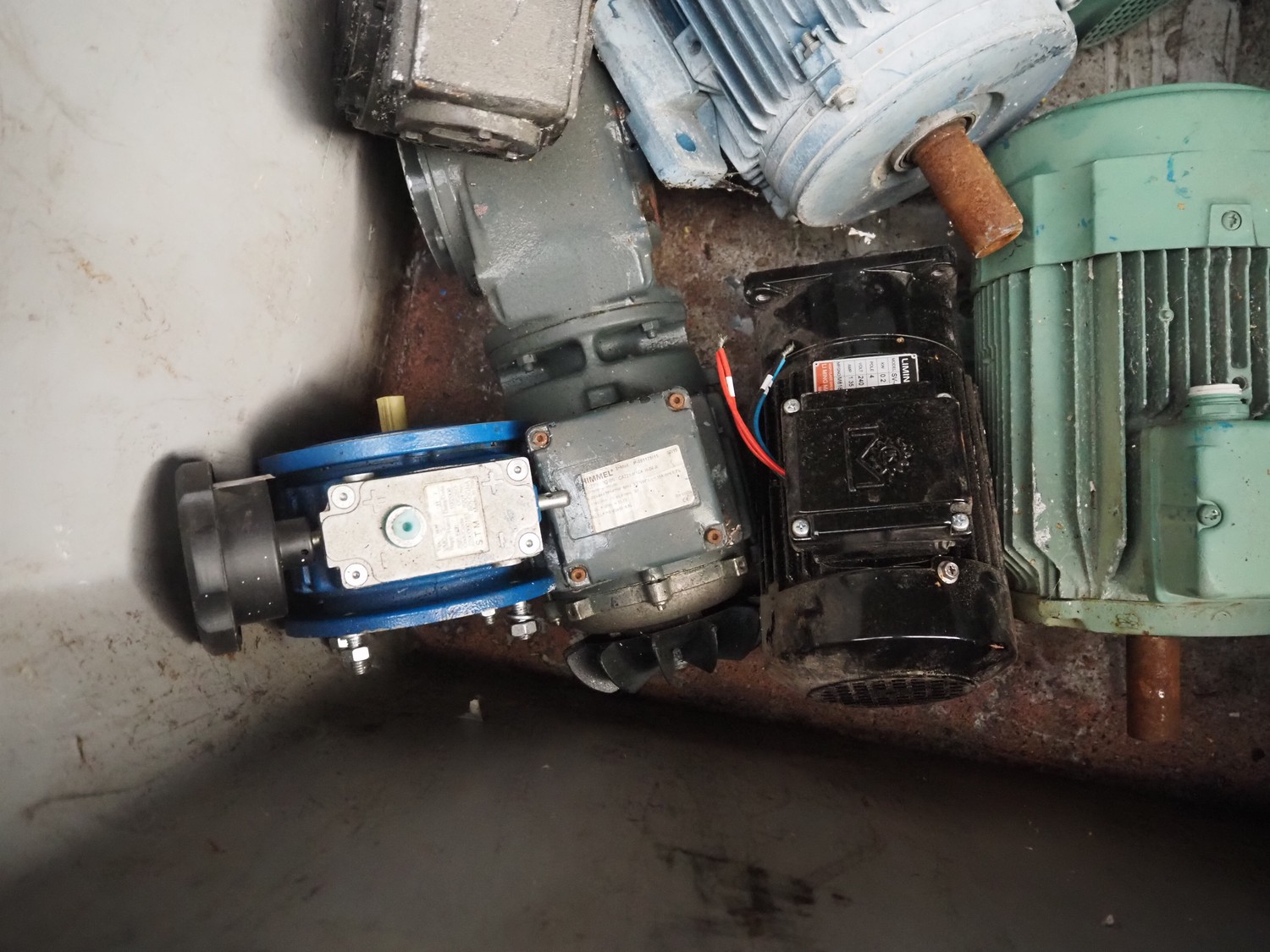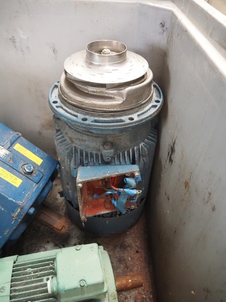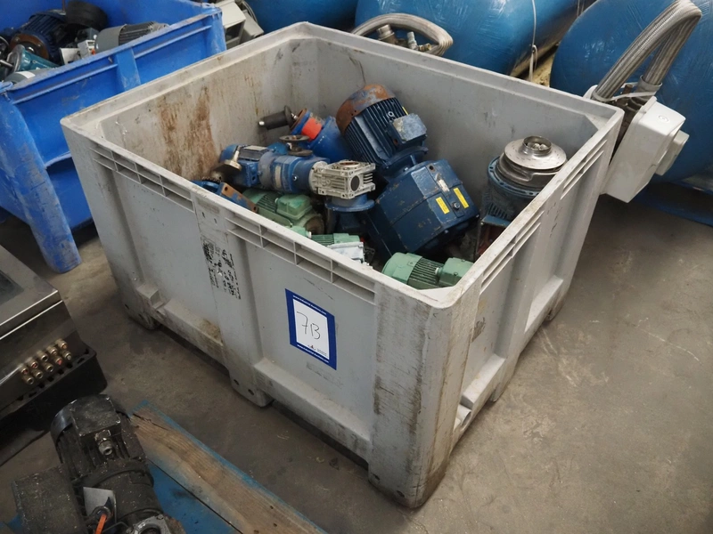 Plastic pallet box with various motors, dimensions: 1200 mm x 1000 mm x 750 mm.