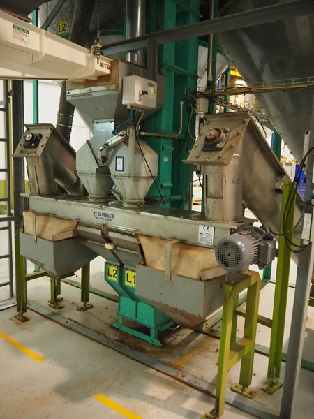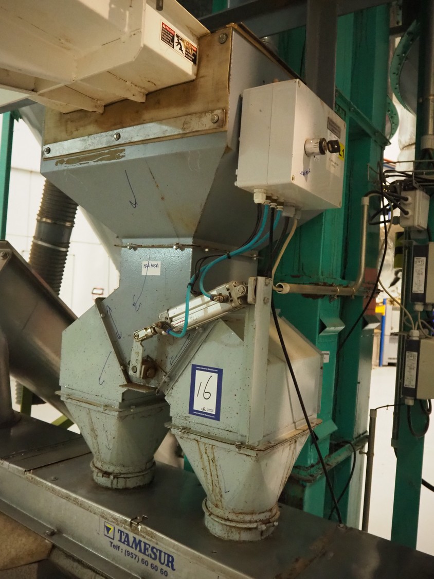 Tamesur S.A. line dividing station with transport screw, model: SFENIX, number: 1619, year of construction: 2015, 380 V, 1.5 kW, diameter screw: 210 mm, tier: 200 mm, total dimensions: 2300 mm x 550 mm x 2100 mm.