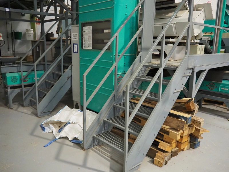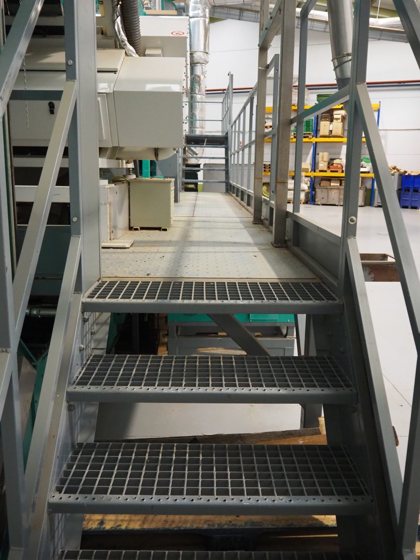 Steel working platform, working height: 1200 mm / 2200 mm, total dimensions: 15000 mm x 3650 mm x 3250 mm.