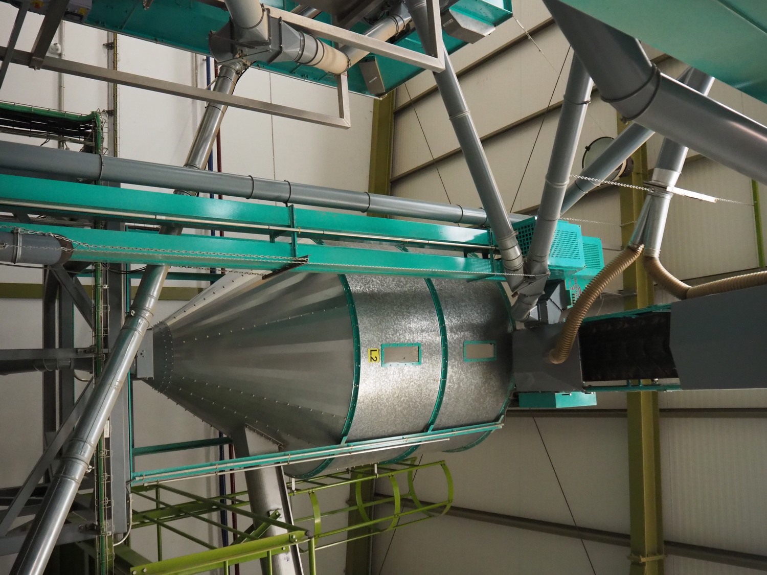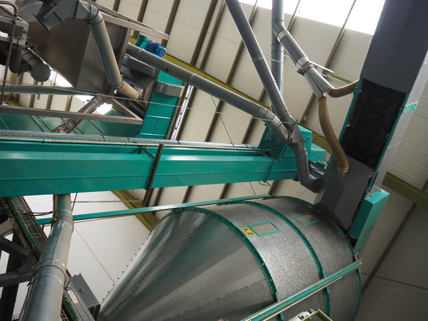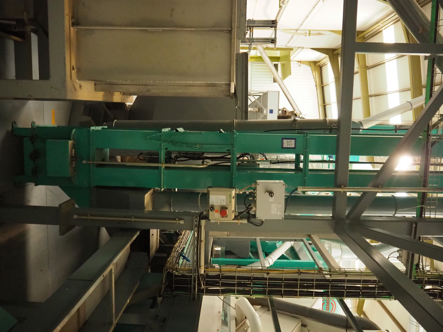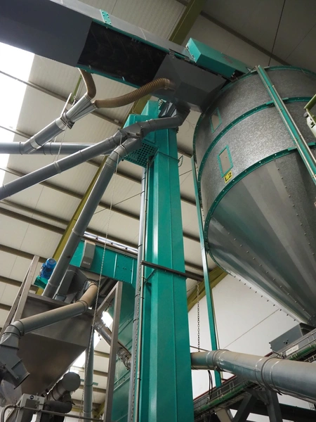José Borrell S.A. bucket elevator, elevating height: 7500 mm, total dimensions: 550 mm x 500 mm x 8000 mm.